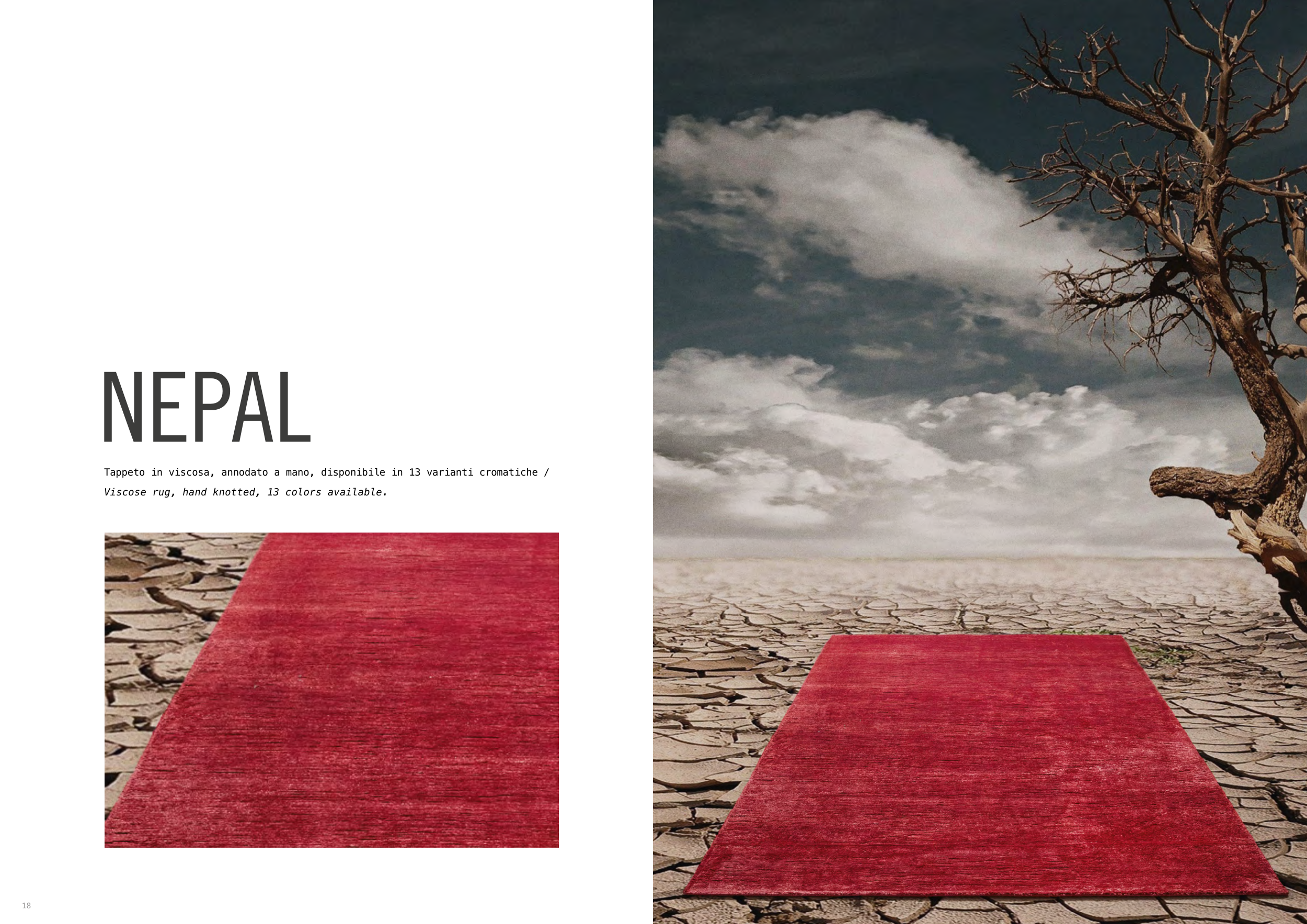 Tappeto in viscosa, annodato a mano, disponibile in 13 varianti cromatiche /