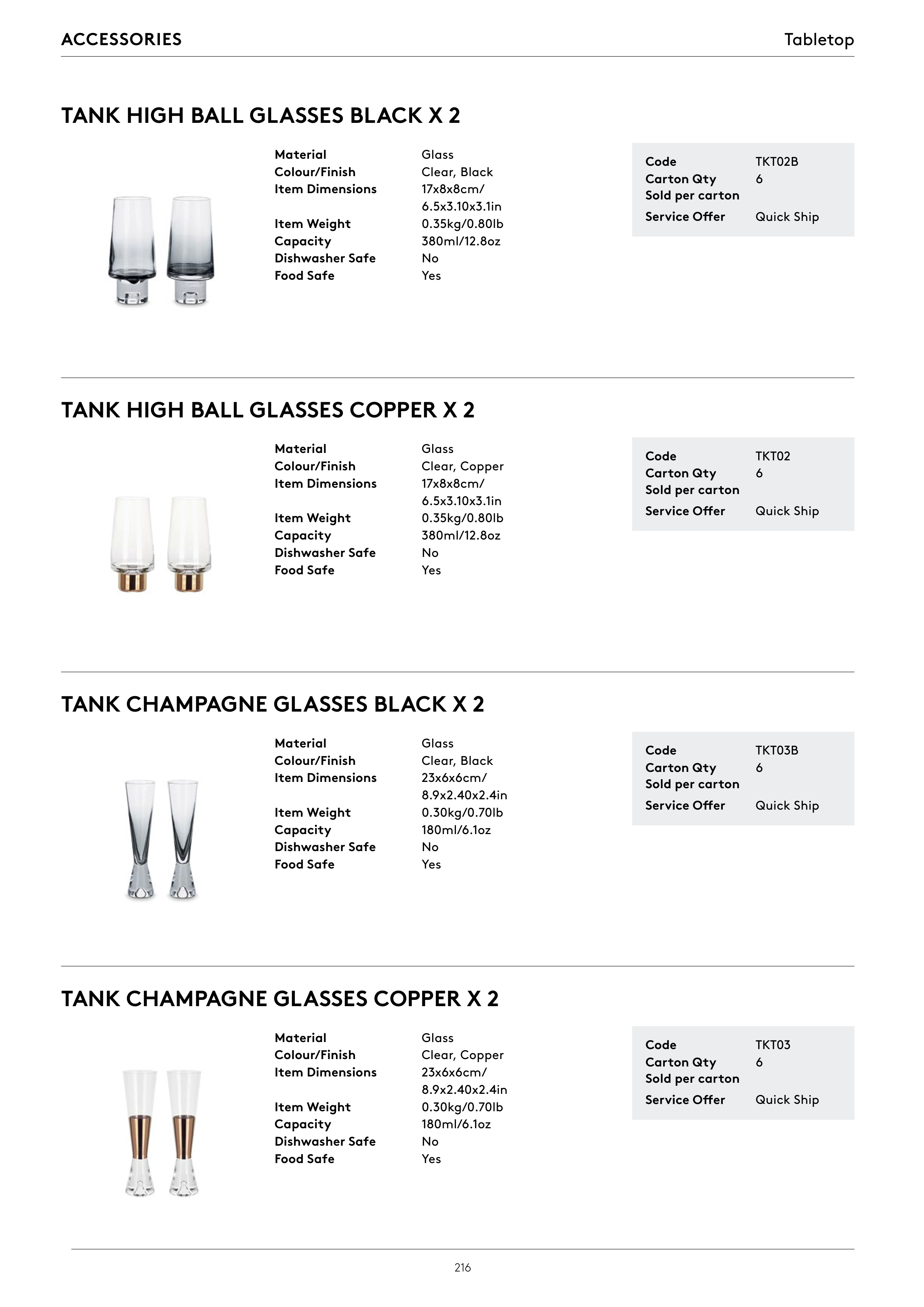 TANK HIGH BALL GLASSES BLACK X 2