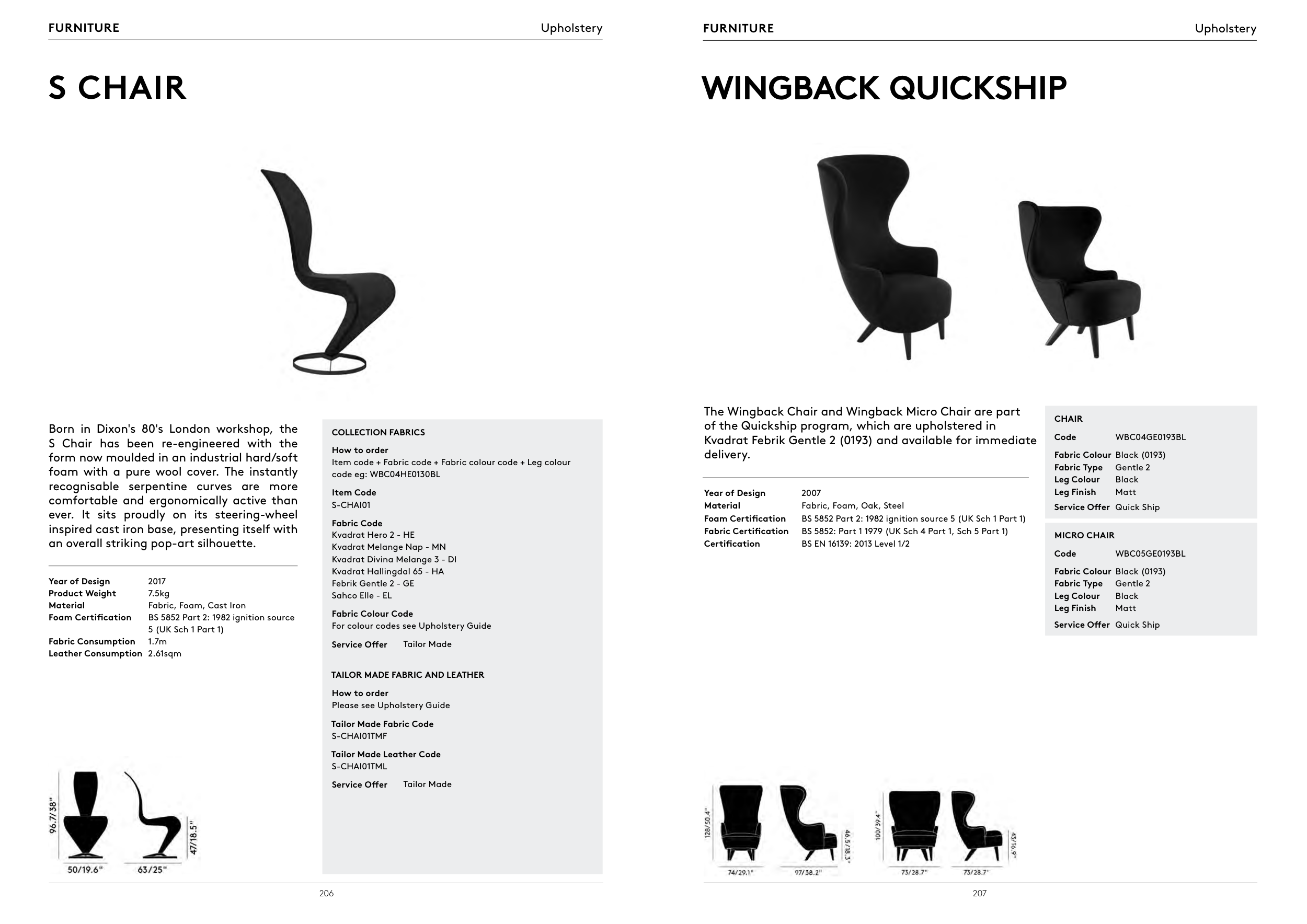 For colour codes see Upholstery Guide