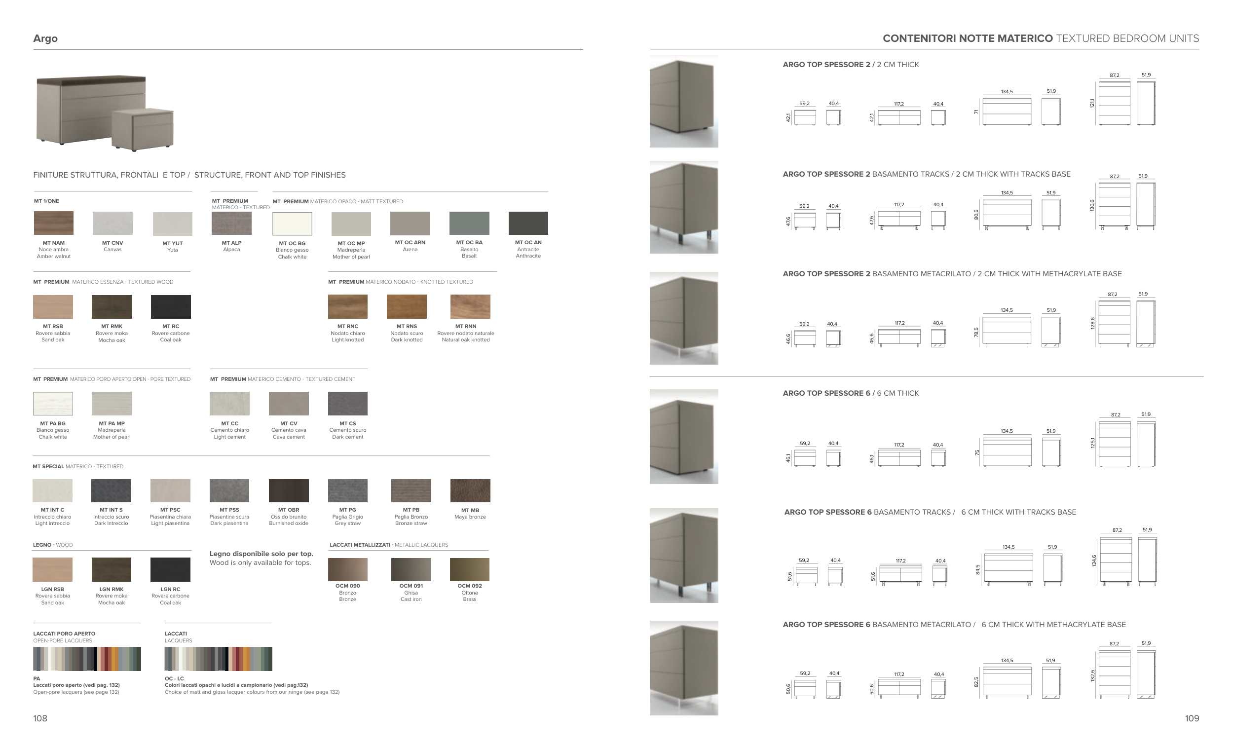 FINITURE STRUTTURA, FRONTALI E TOP / STRUCTURE, FRONT AND TOP FINISHES