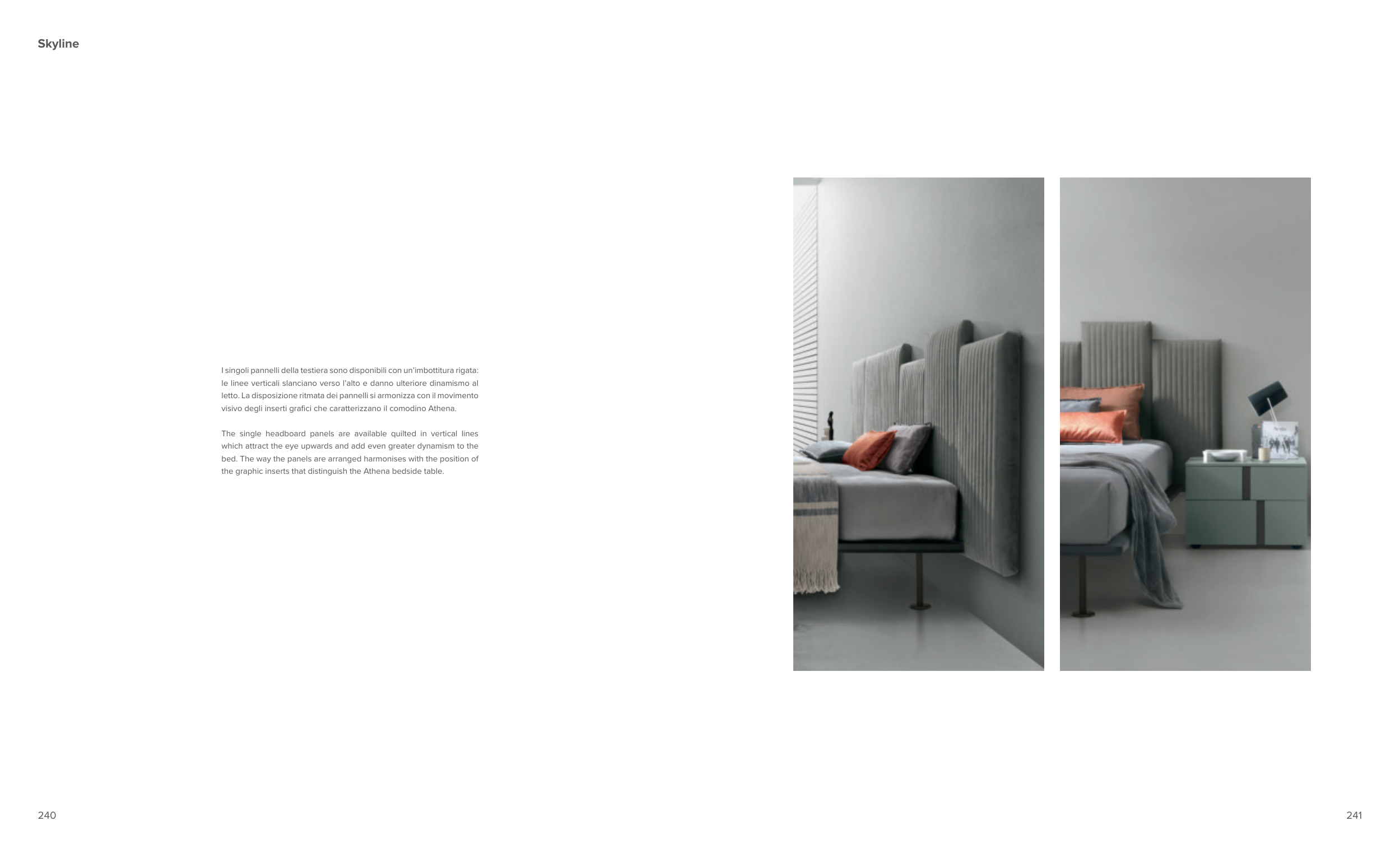 I singoli pannelli della testiera sono disponibili con un’imbottitura rigata: