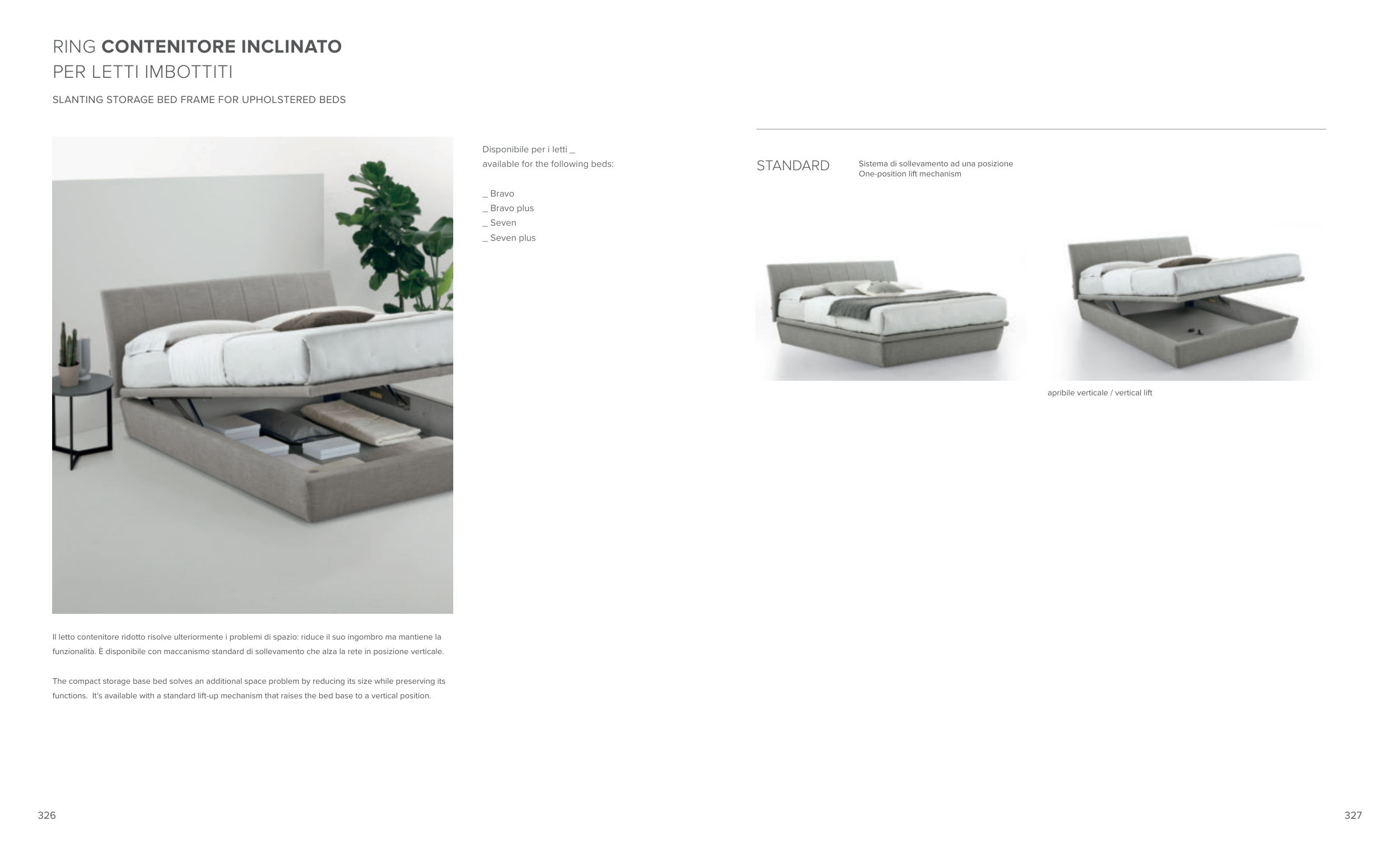 functions. It’s available with a standard lift-up mechanism that raises the bed base to a vertical position.