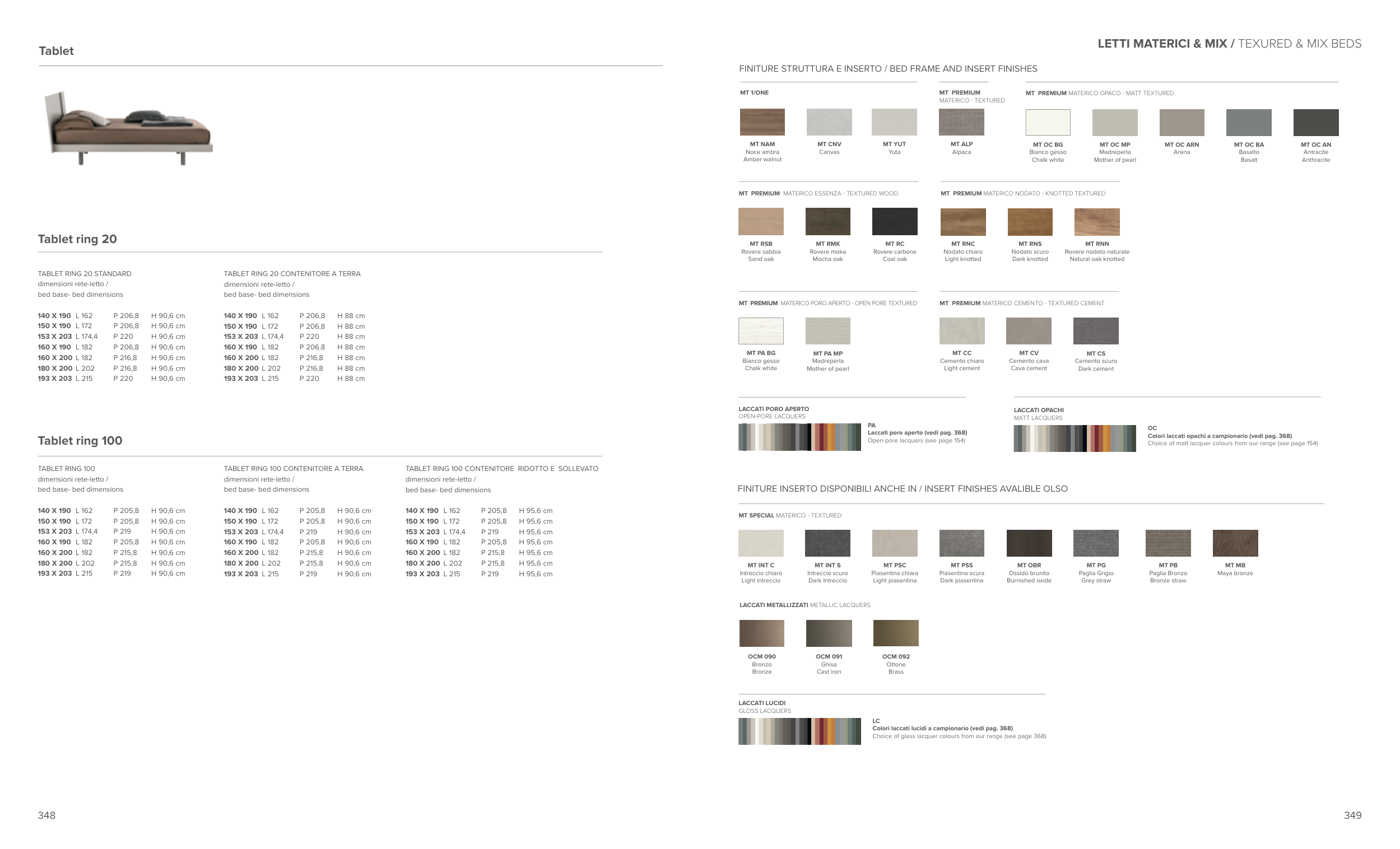 FINITURE STRUTTURA E INSERTO / BED FRAME AND INSERT FINISHES