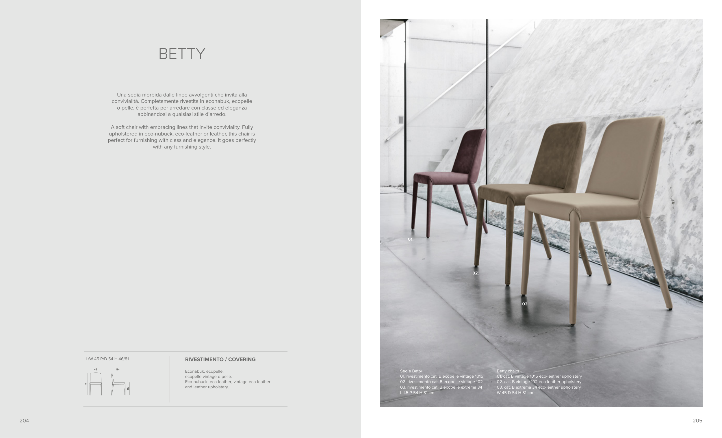 upholstered in eco-nubuck, eco-leather or leather, this chair is