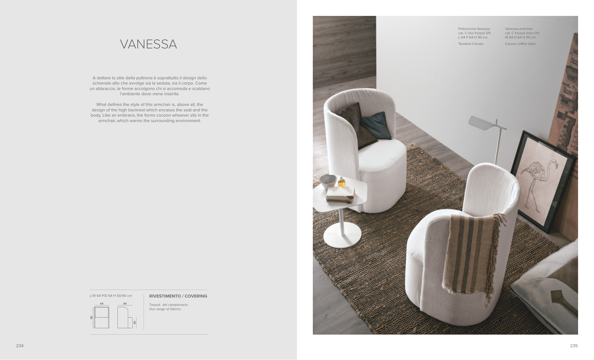 schienale alto che avvolge sia la seduta, sia il corpo. Come