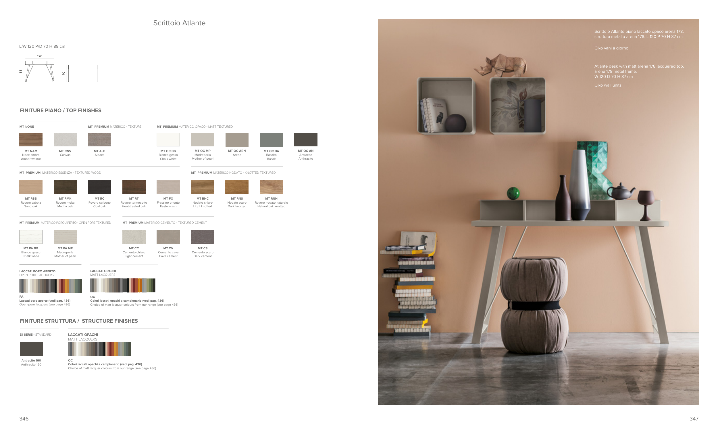 Atlante desk with matt arena 178 lacquered top,