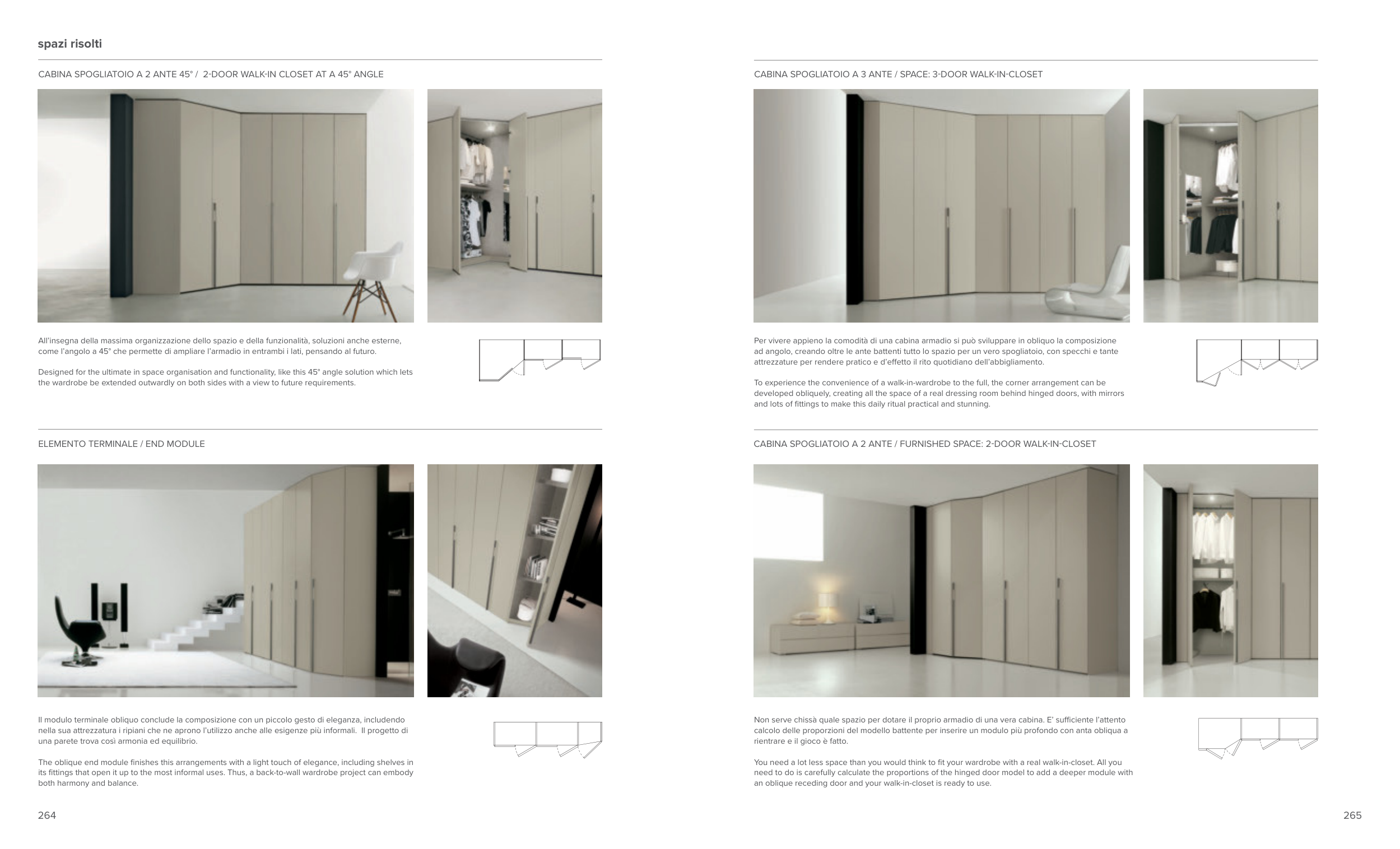 come l’angolo a 45° che permette di ampliare l’armadio in entrambi i lati, pensando al futuro.