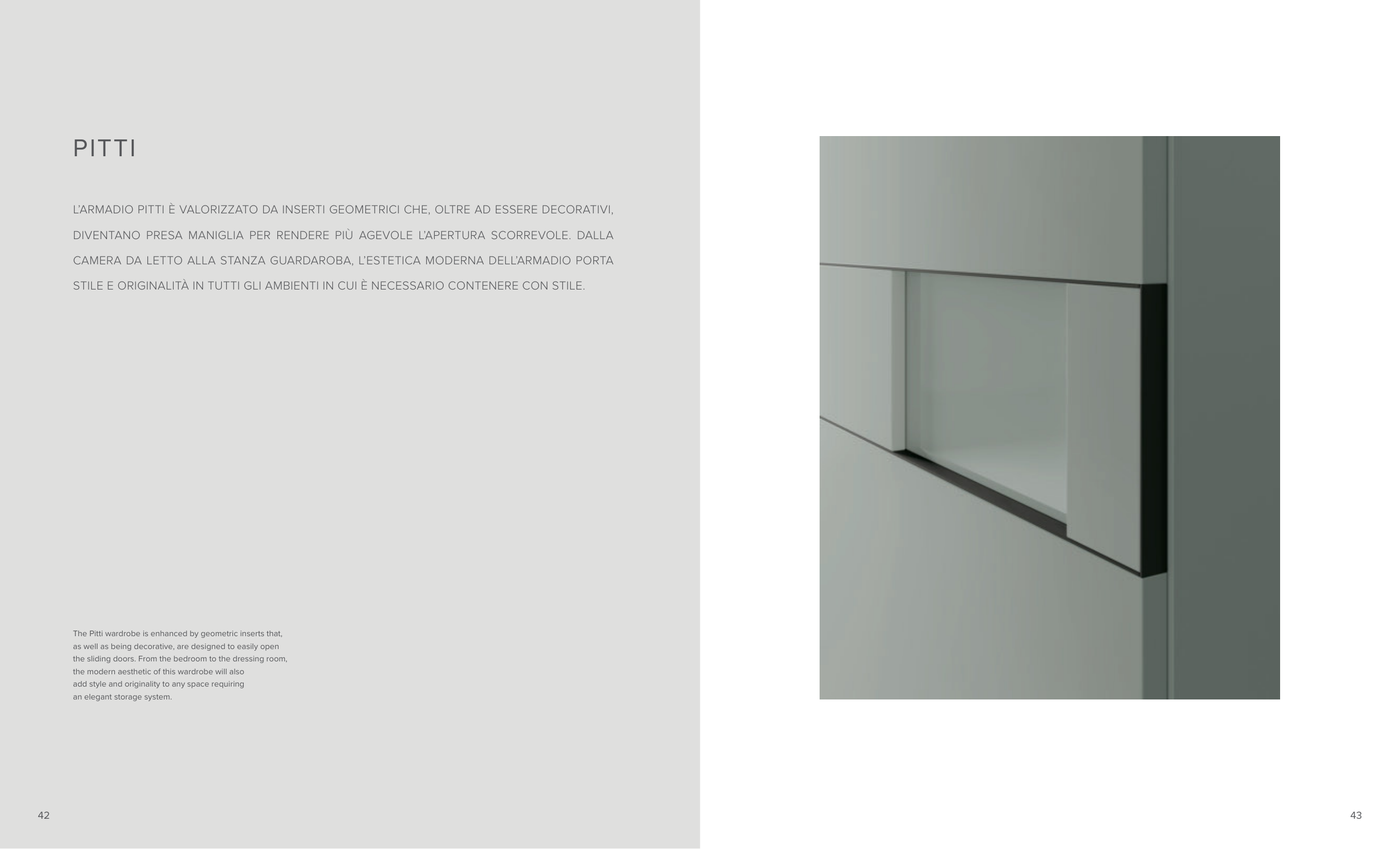 The Pitti wardrobe is enhanced by geometric inserts that,