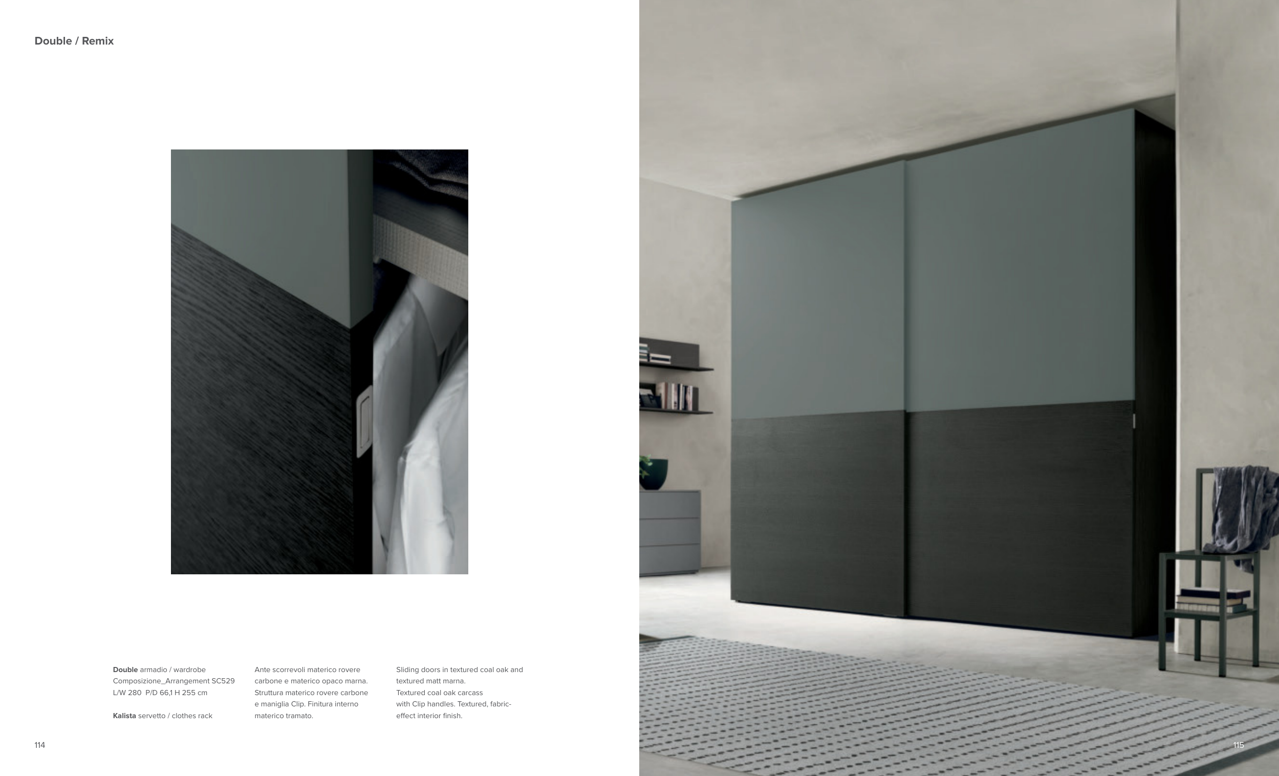 Sliding doors in textured coal oak and