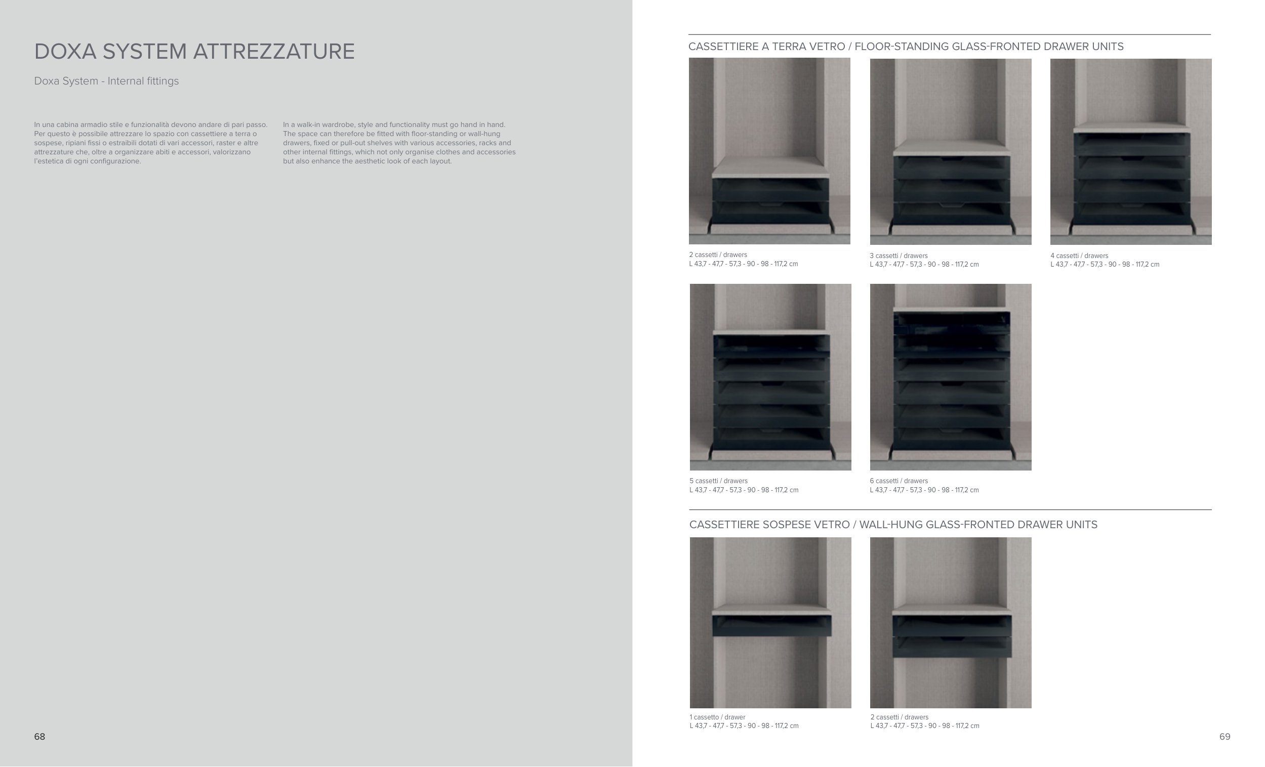 CASSETTIERE SOSPESE VETRO / WALL-HUNG GLASS-FRONTED DRAWER UNITS