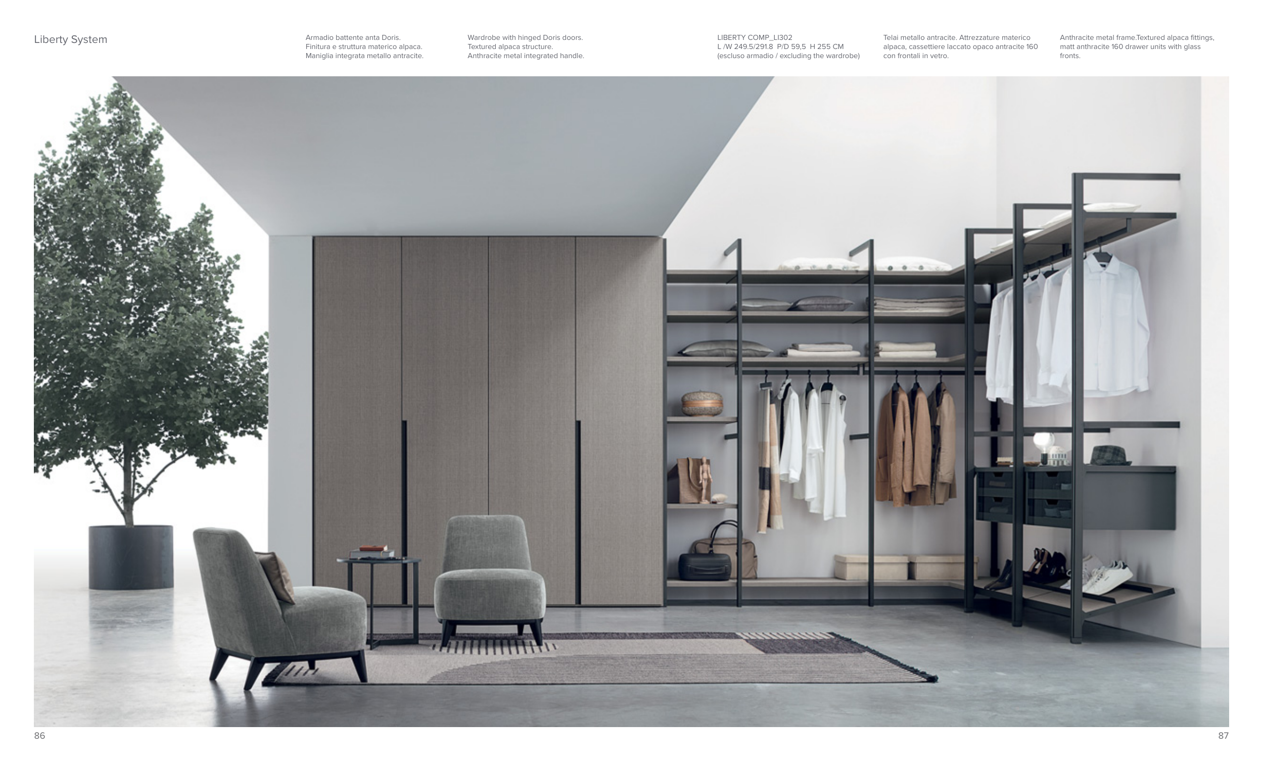 Anthracite metal frame.Textured alpaca fi ttings,