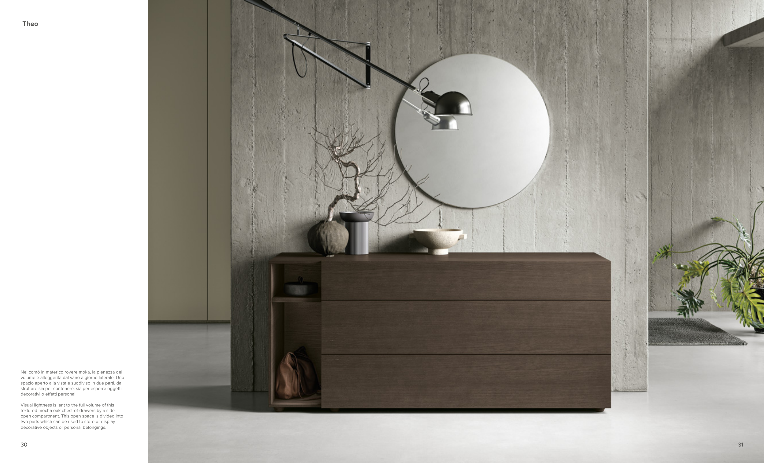 Nel comò in materico rovere moka, la pienezza del