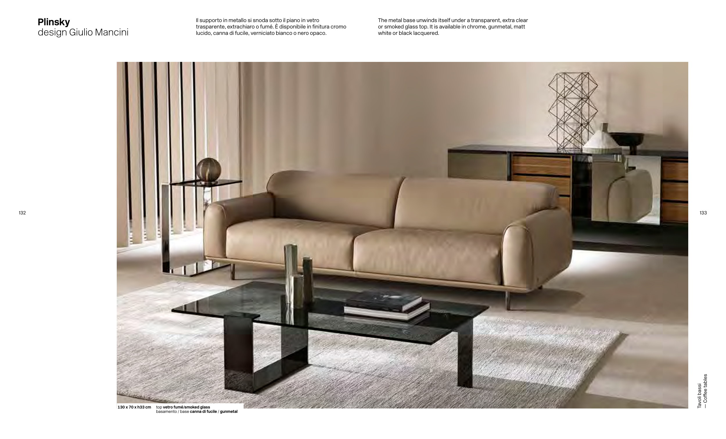or smoked glass top. It is available in chrome, gunmetal, matt