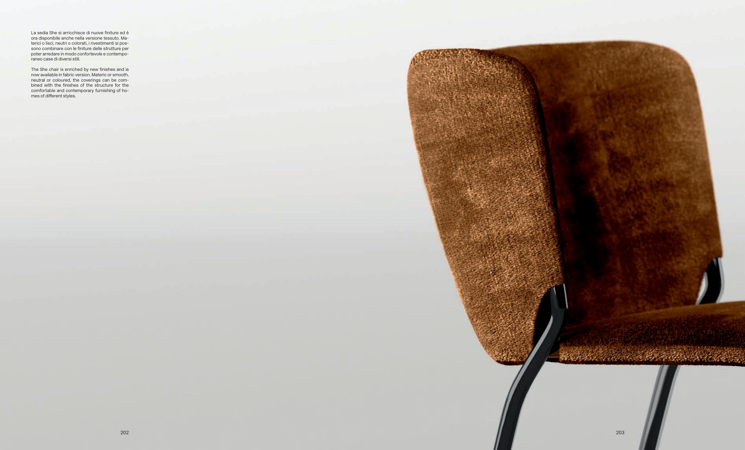 The She chair is enriched by new finishes and is