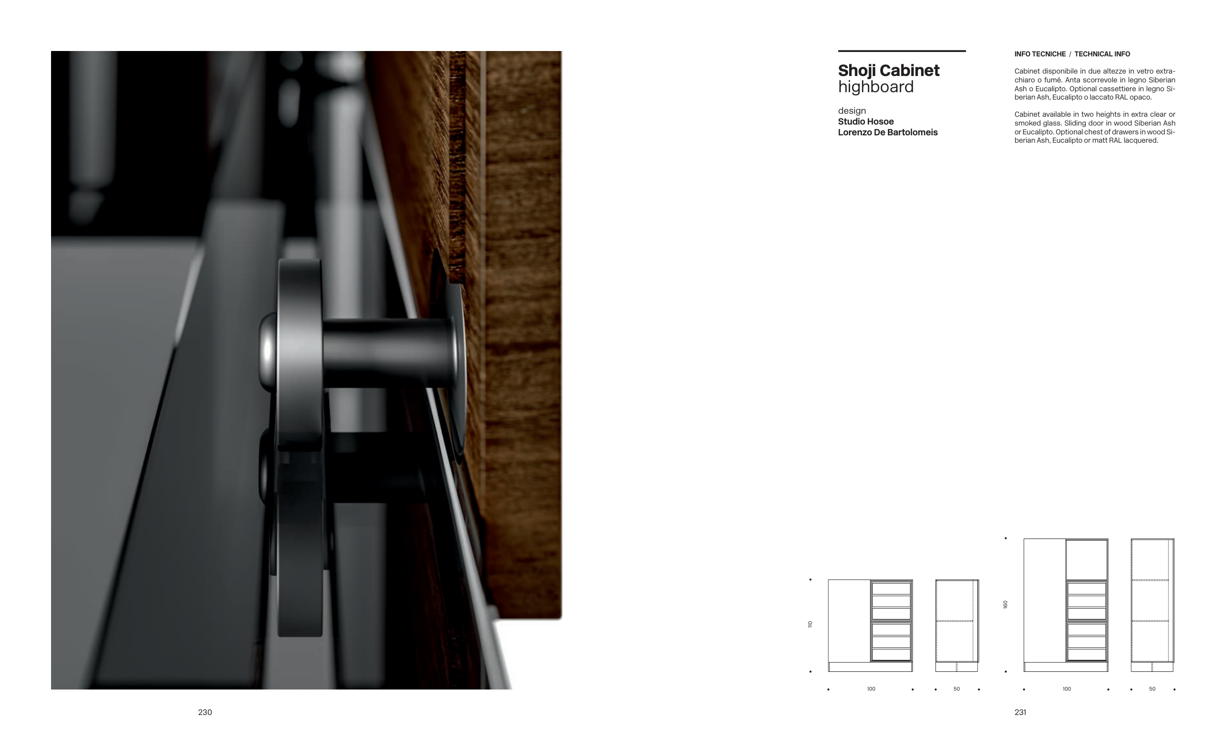 Cabinet available in two heights in extra clear or