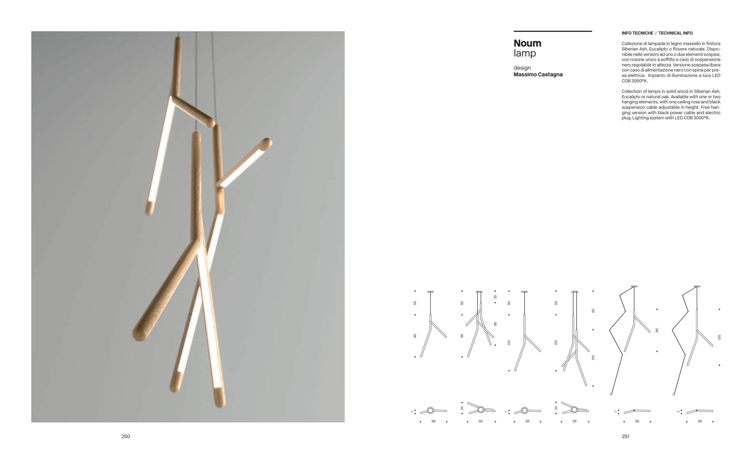 Collezione di lampade in legno massello in finitura