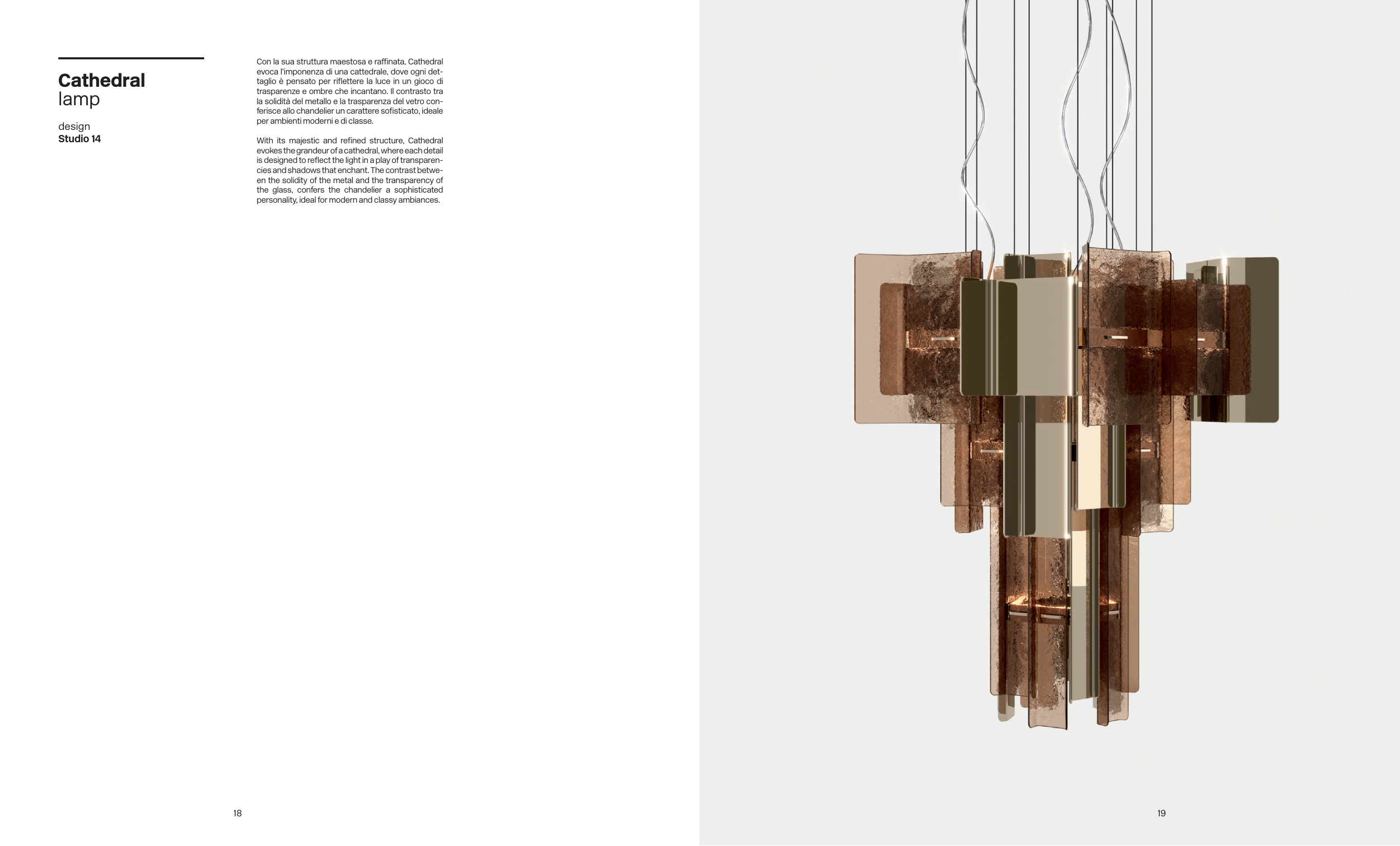 is designed to reflect the light in a play of transparen-
