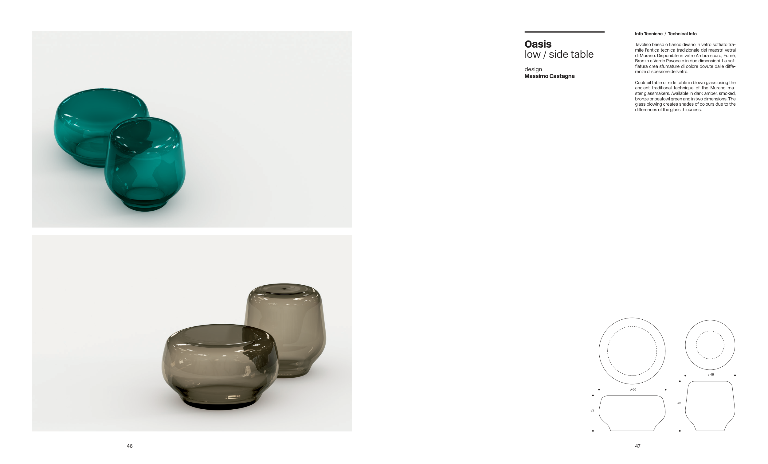 di Murano. Disponibile in vetro Ambra scuro, Fumè,