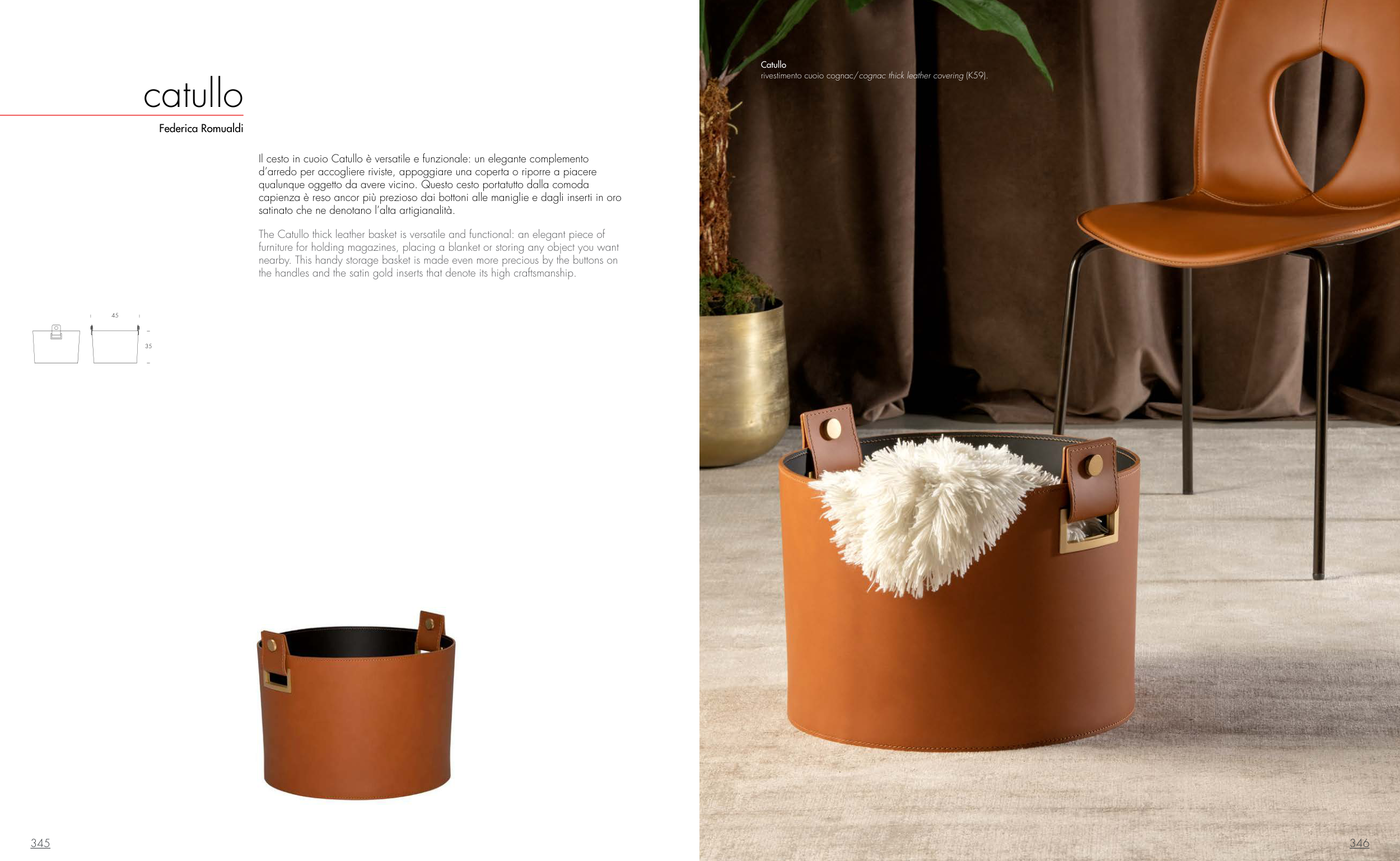 The Catullo thick leather basket is versatile and functional: an elegant piece of
