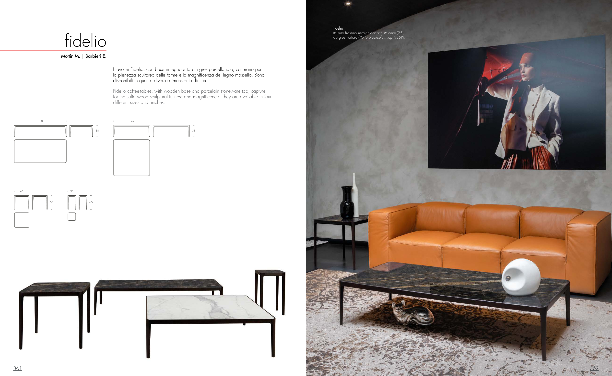 I tavolini Fidelio, con base in legno e top in gres porcellanato, catturano per