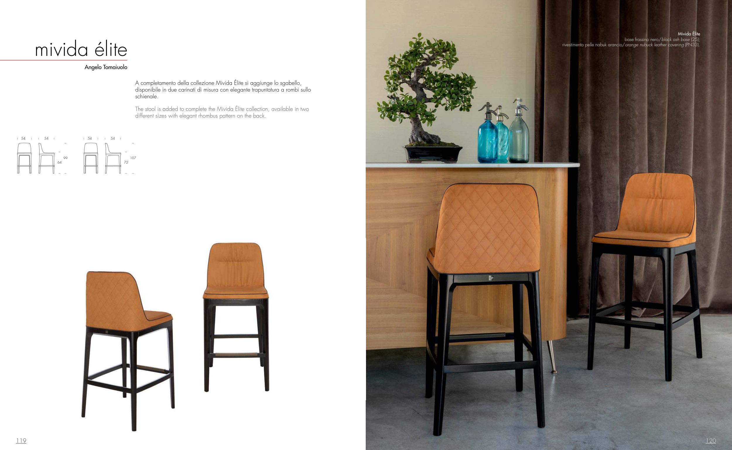 A completamento della collezione Mivida Élite si aggiunge lo sgabello,