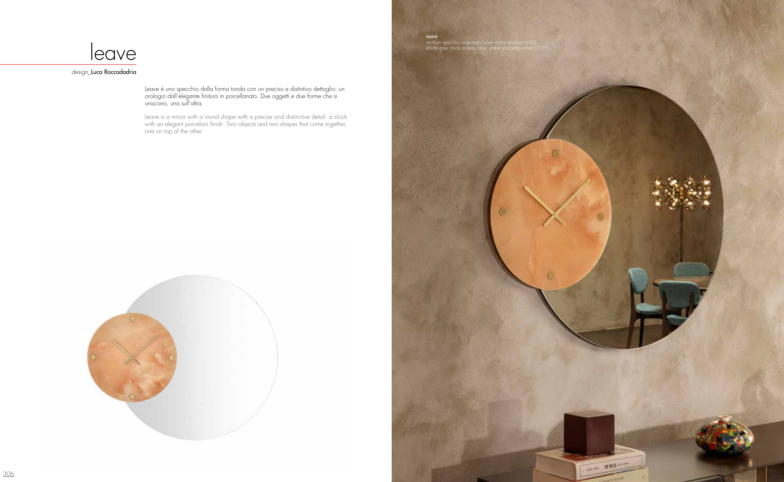 orologio dall’elegante finitura in porcellanato. Due oggetti e due forme che si