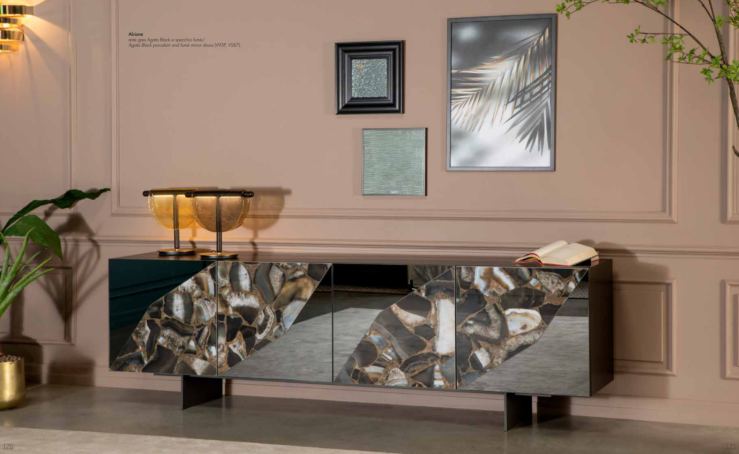 Agata Black porcelain and fumè mirror doors (V95P, VS87).