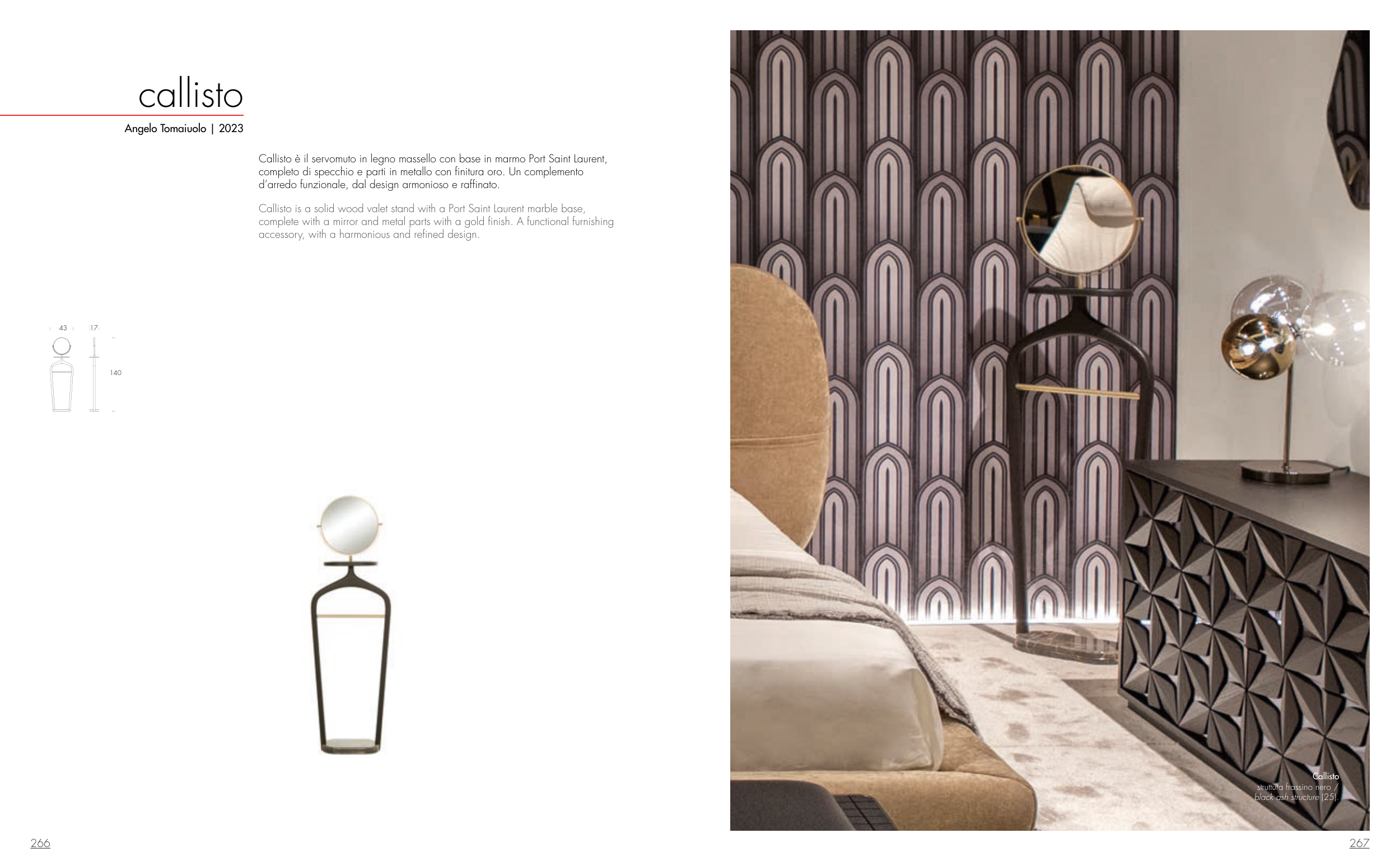 Callisto is a solid wood valet stand with a Port Saint Laurent marble base,