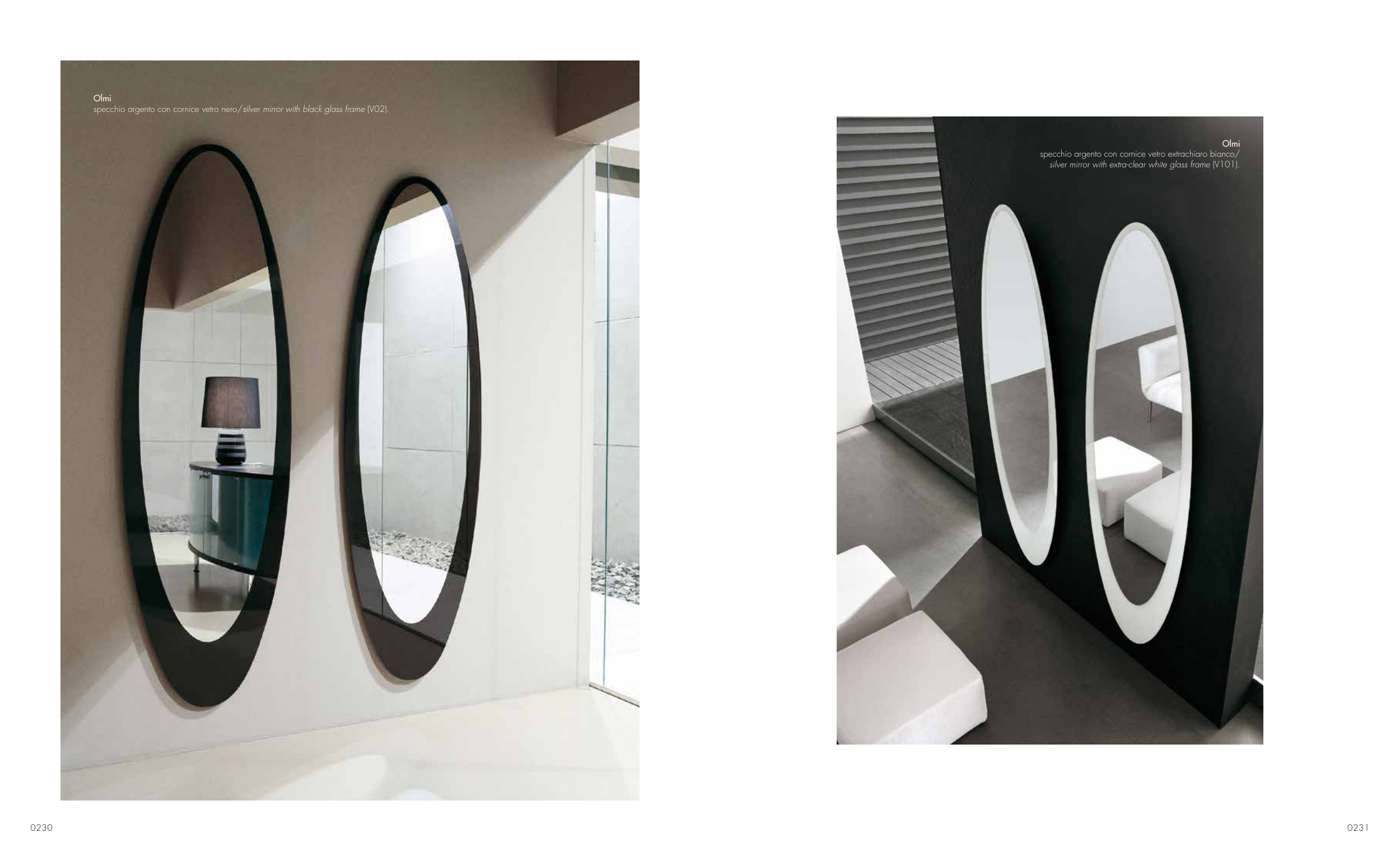 silver mirror with extra-clear white glass frame (V101).