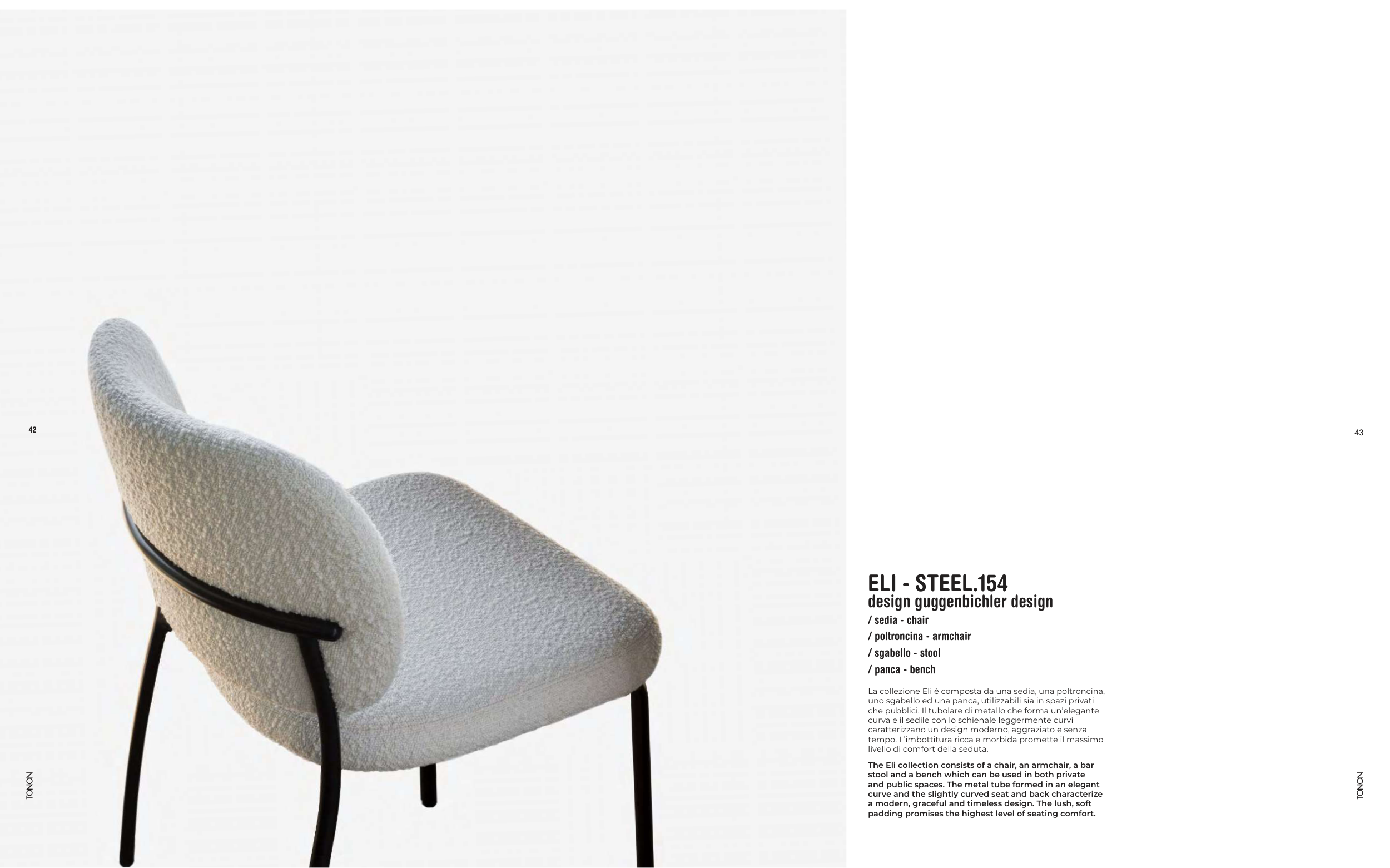 La collezione Eli è composta da una sedia, una poltroncina,