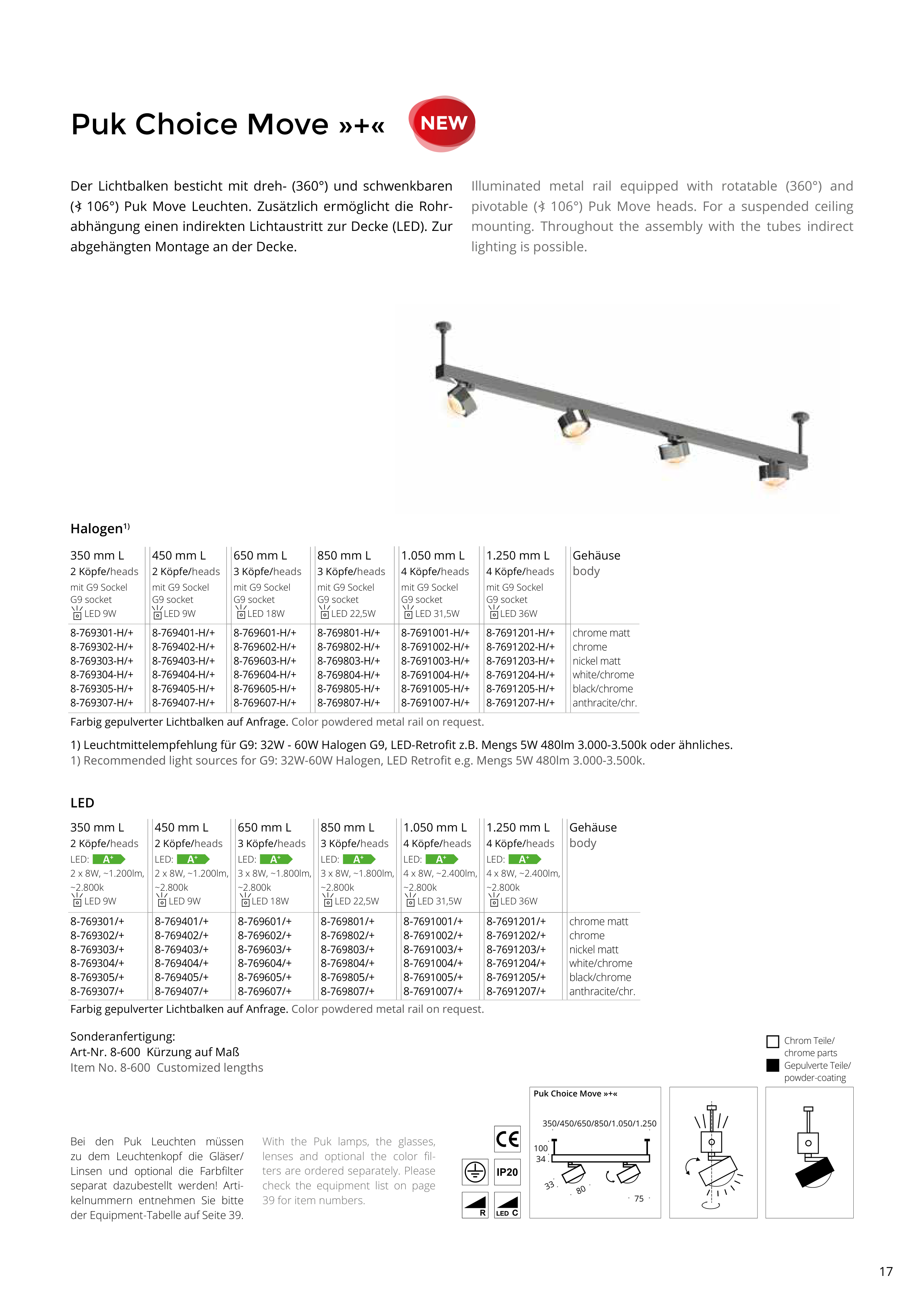 pivotable (<) 106°) Puk Move heads. For a suspended ceiling