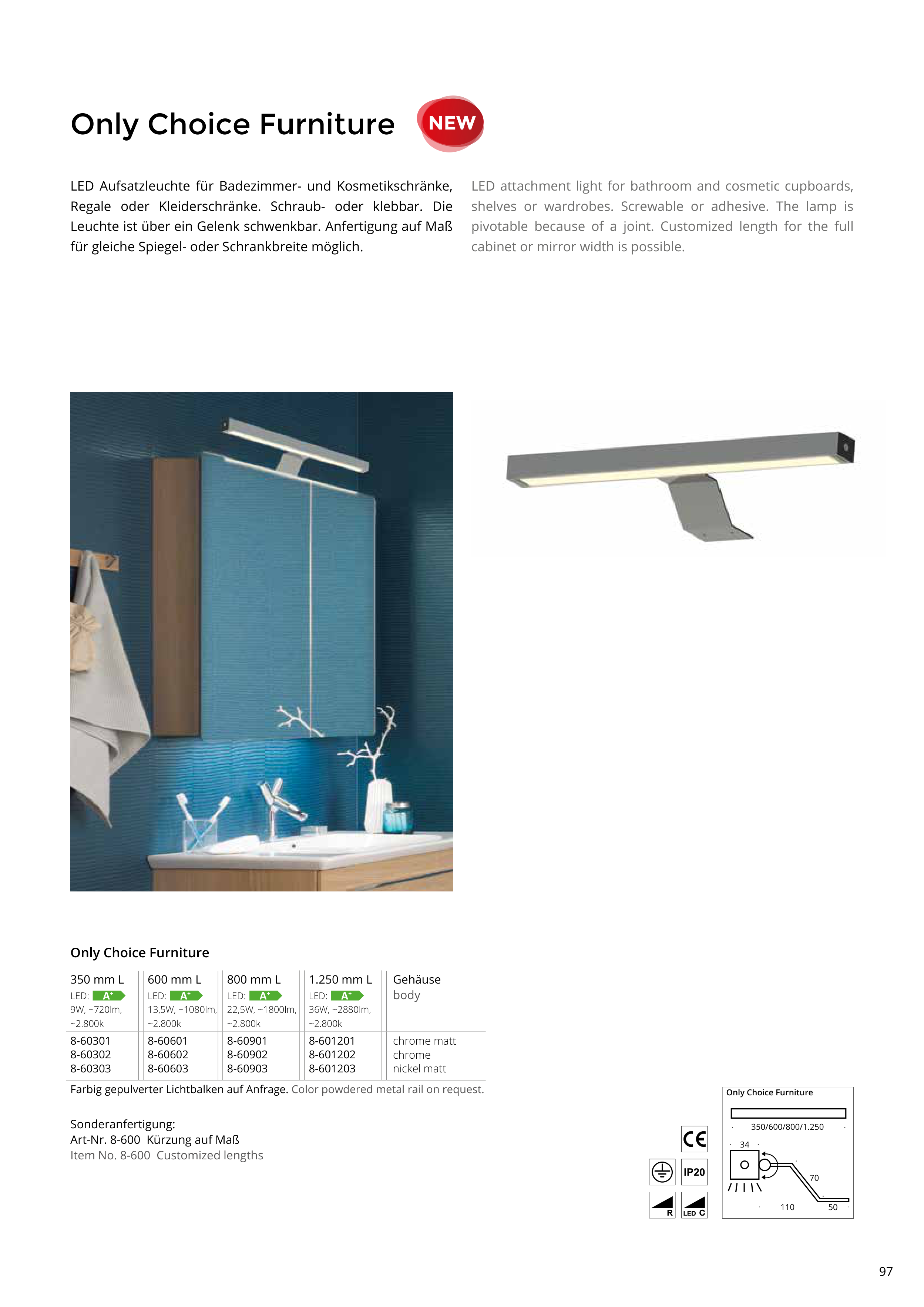 für gleiche Spiegel- oder Schrankbreite möglich.