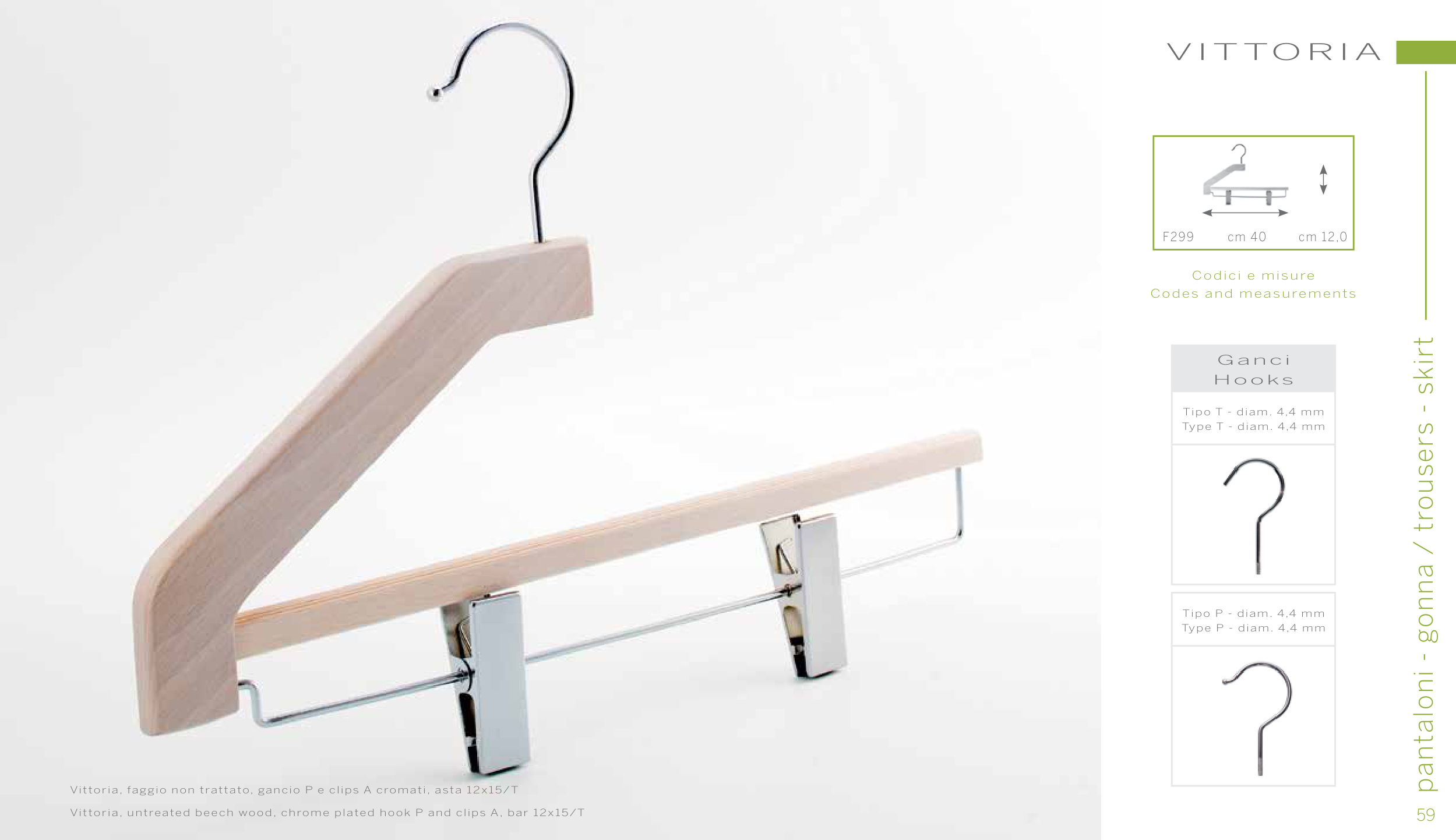 vittoria, faggio non trattato, gancio P e clips A cromati, asta 12x15/T