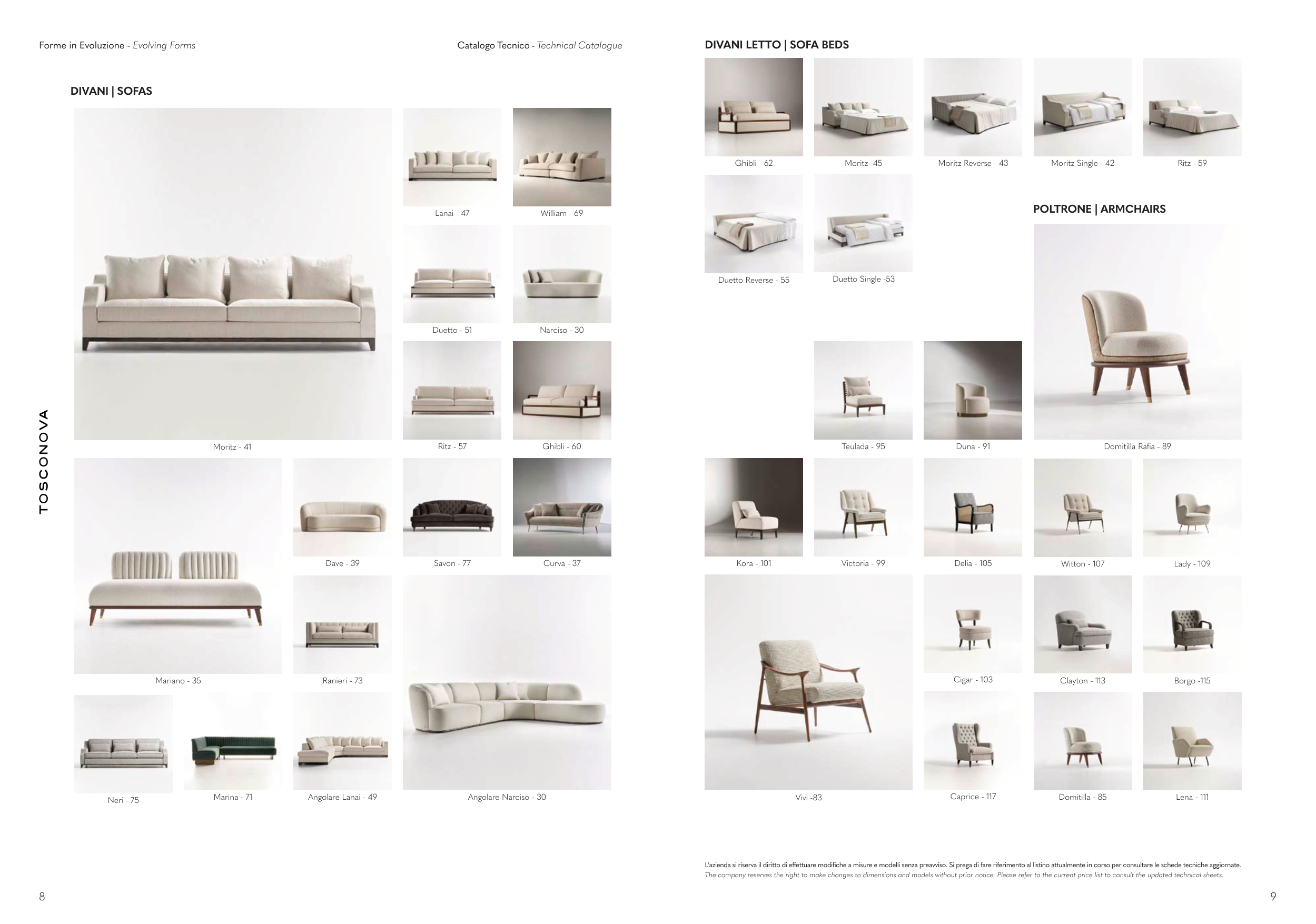 L'azienda si riserva il diritto di effettuare modifiche a misure e modelli senza preavviso. Si prega di fare riferimento al listino attualmente in corso per consultare le schede tecniche aggiornate.
