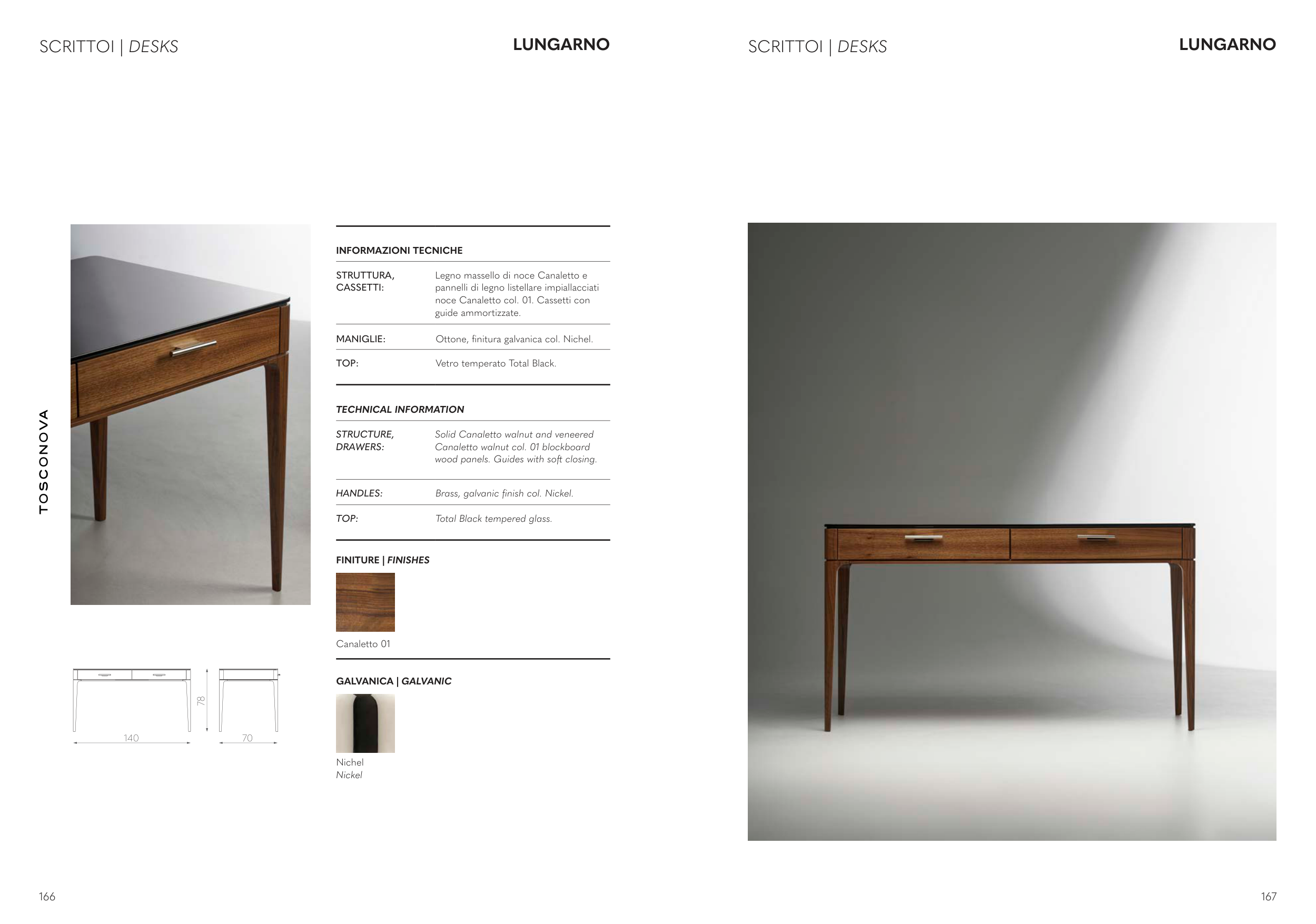 Solid Canaletto walnut and veneered