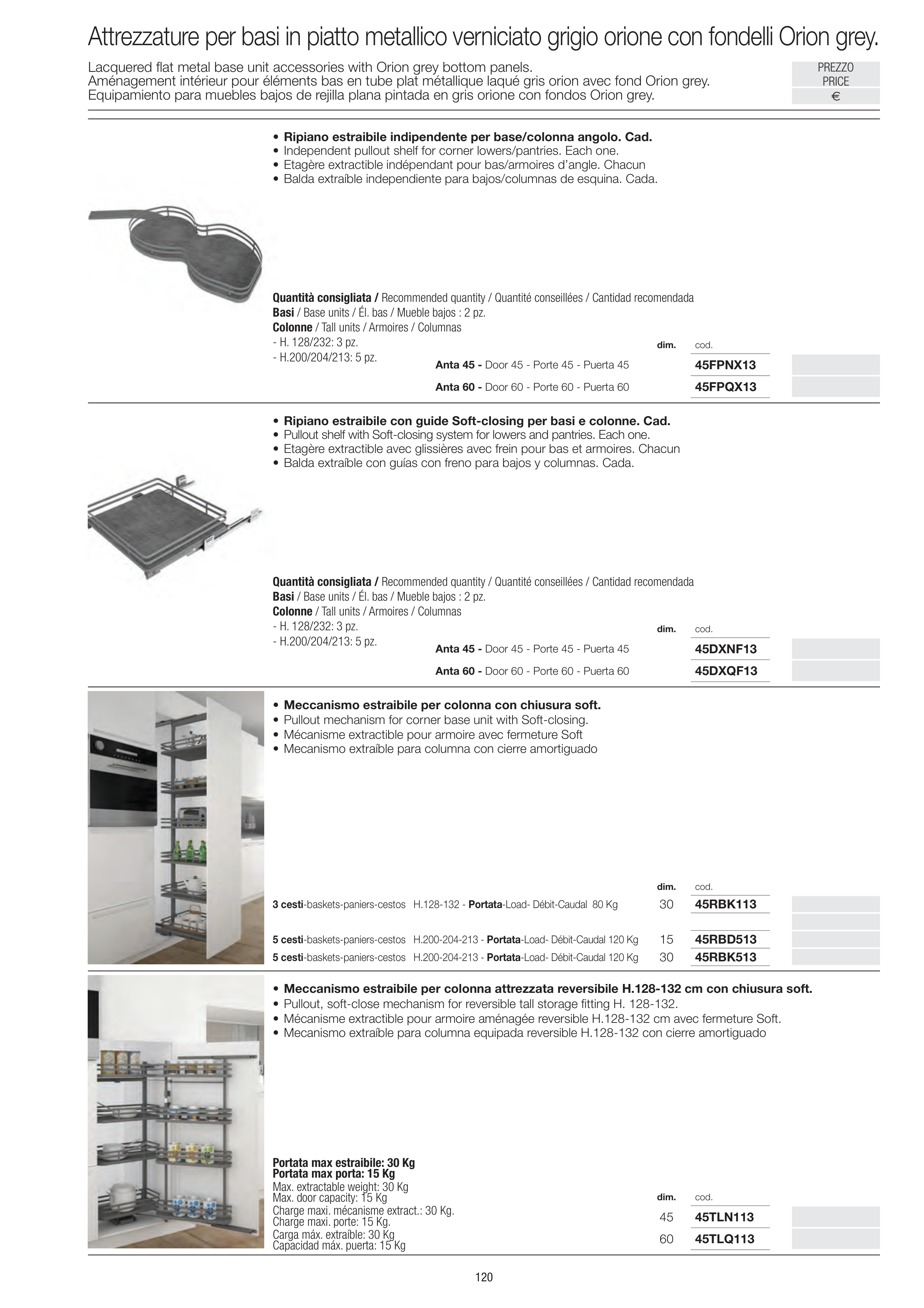 • Ripiano estraibile con guide Soft-closing per basi e colonne. Cad.