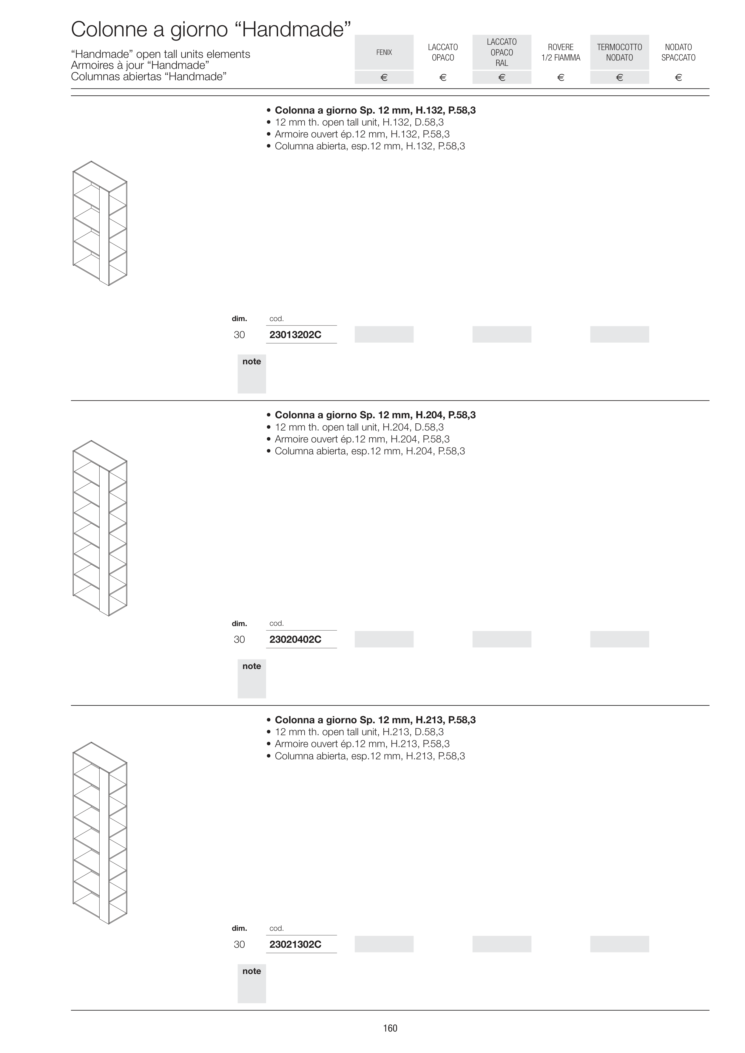 • 12 mm th. open tall unit, H.213, D.58,3
