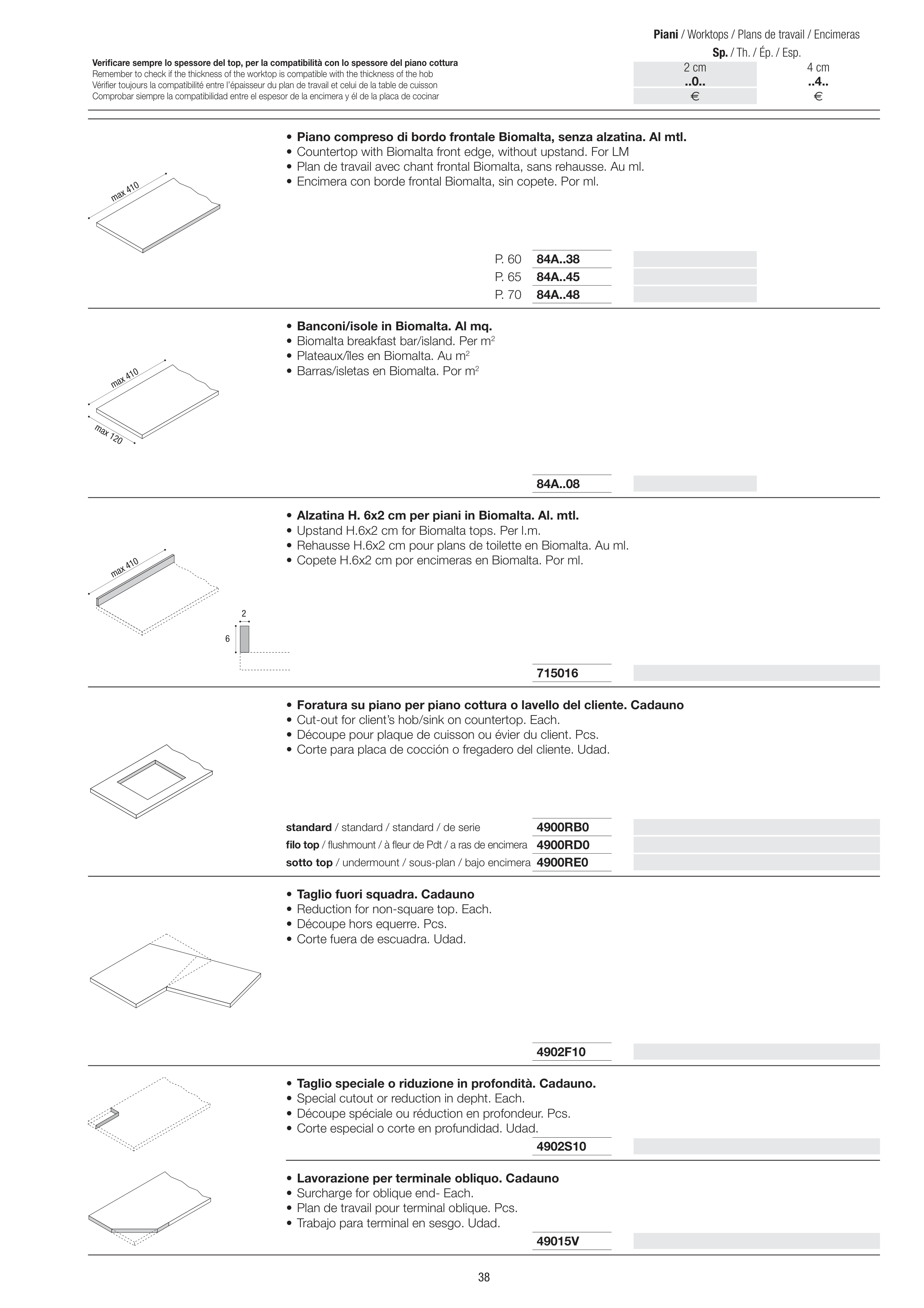 • Découpe spéciale ou réduction en profondeur. Pcs.