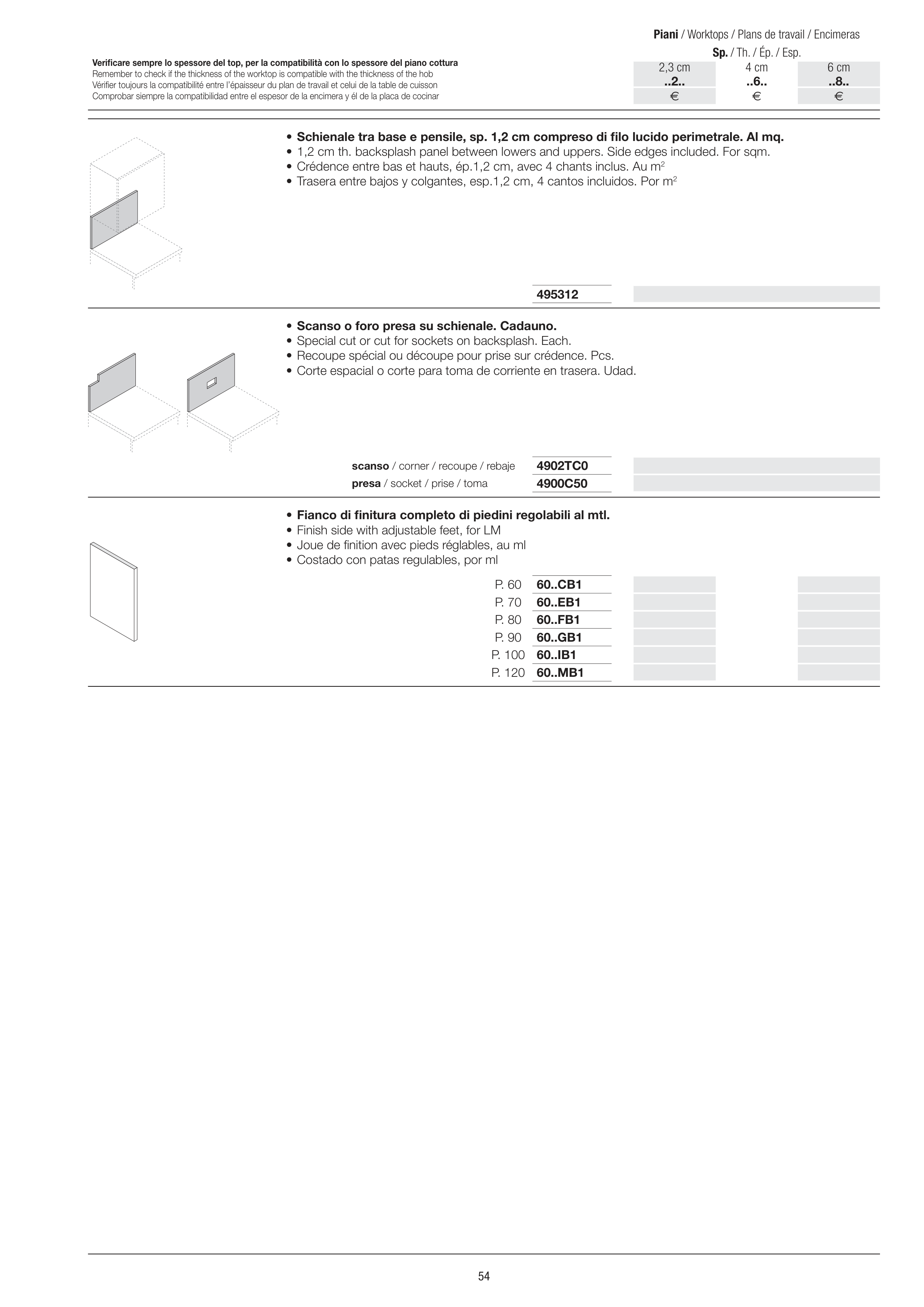 • 1,2 cm th. backsplash panel between lowers and uppers. Side edges included. For sqm.