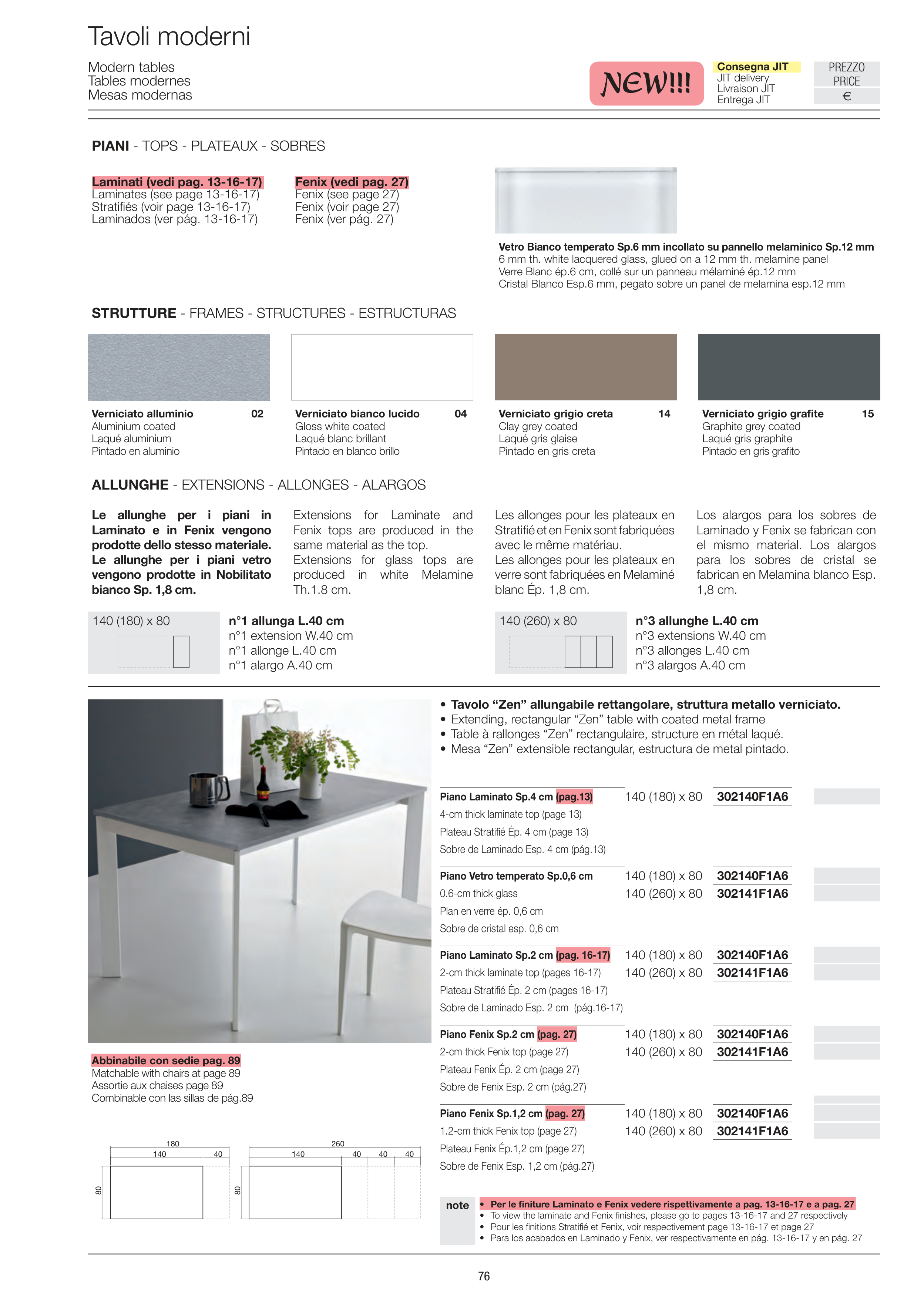 • Para los acabados en Laminado y Fenix, ver respectivamente en pág. 13-16-17 y en pág. 27