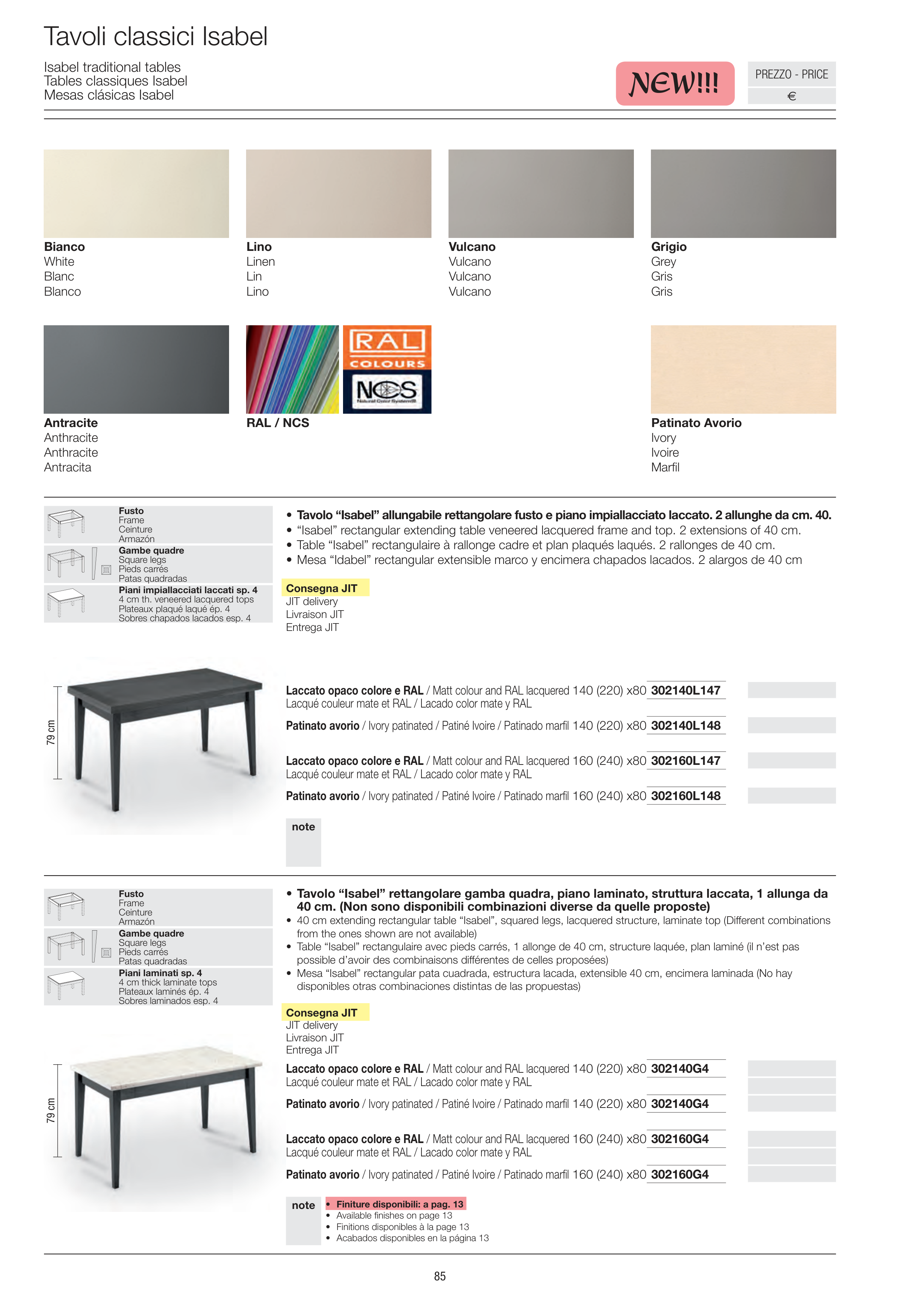 Laccato opaco colore e RAL / Matt colour and RAL lacquered 160 (240) x80 302160G4