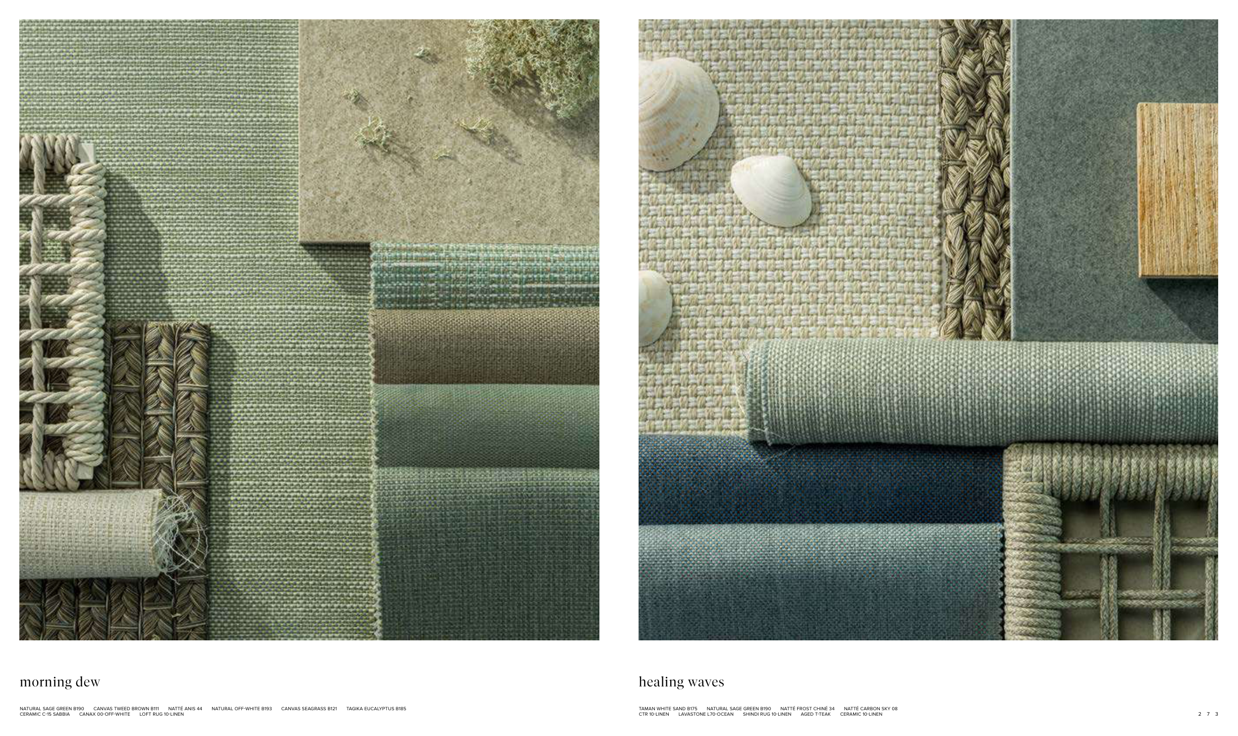 NATURAL SAGE GREEN B190 CANVAS TWEED BROWN B111 NATTÉ ANIS 44 NATURAL OFF-WHITE B193 CANVAS SEAGRASS B121 TAGIKA EUCALYPTUS B185