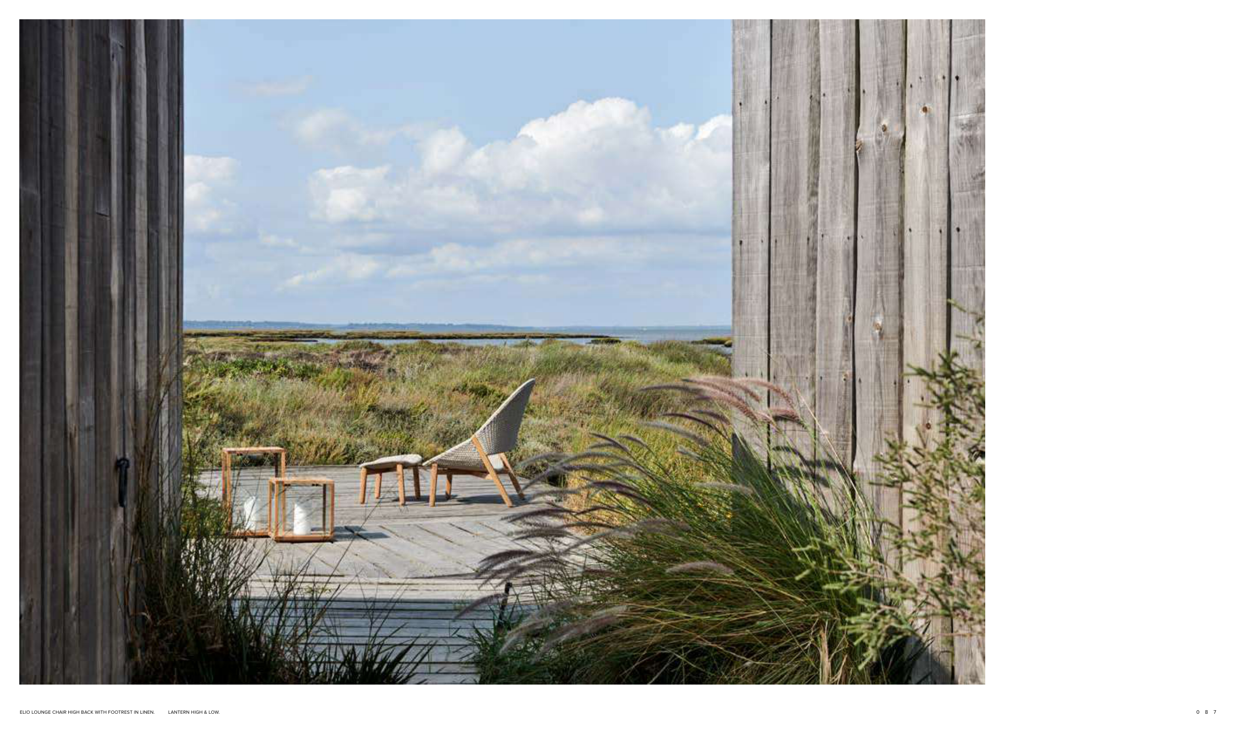 ELIO LOUNGE CHAIR HIGH BACK WITH FOOTREST IN LINEN. LANTERN HIGH & LOW.
