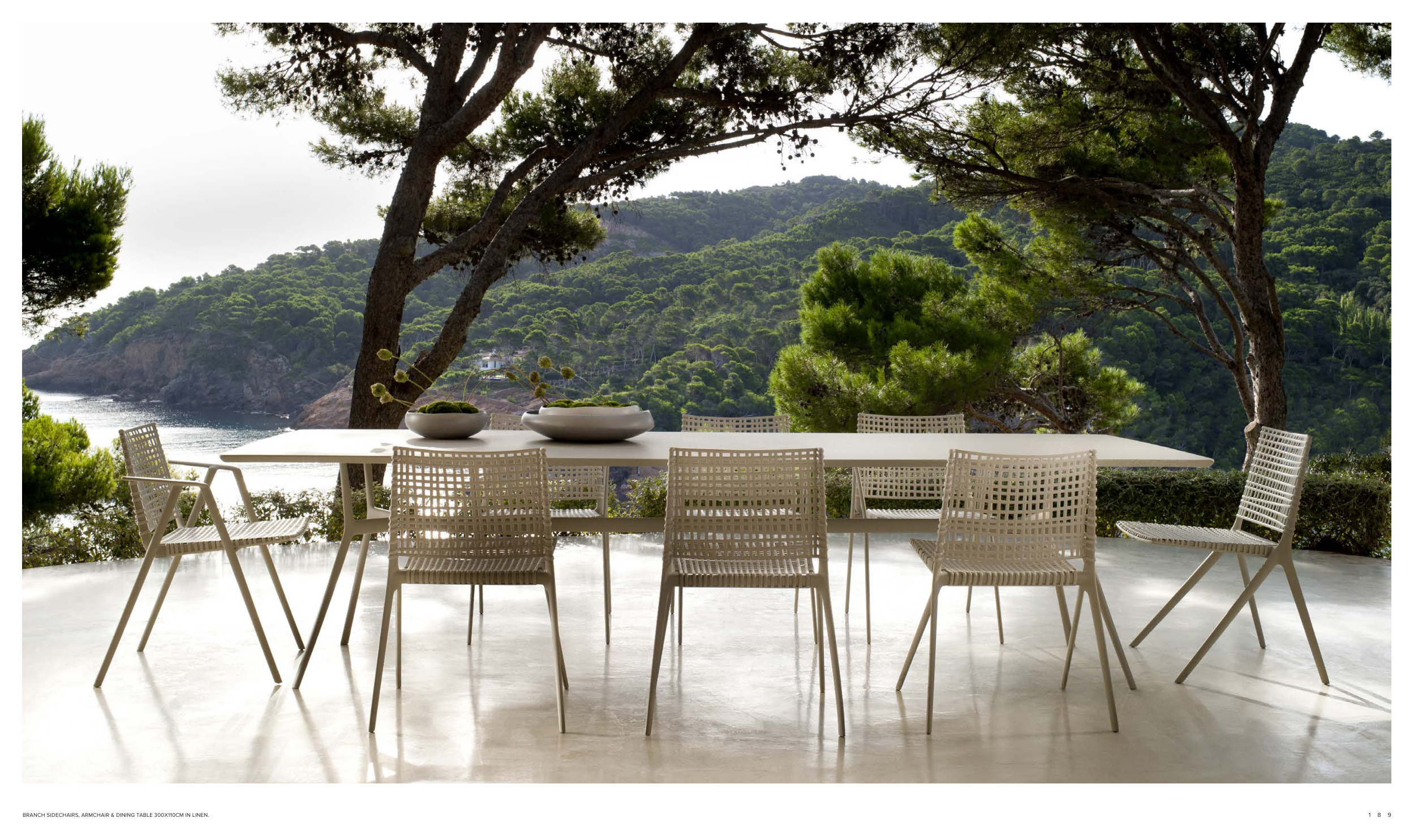 BRANCH SIDECHAIRS, ARMCHAIR & DINING TABLE 300X110CM IN LINEN.