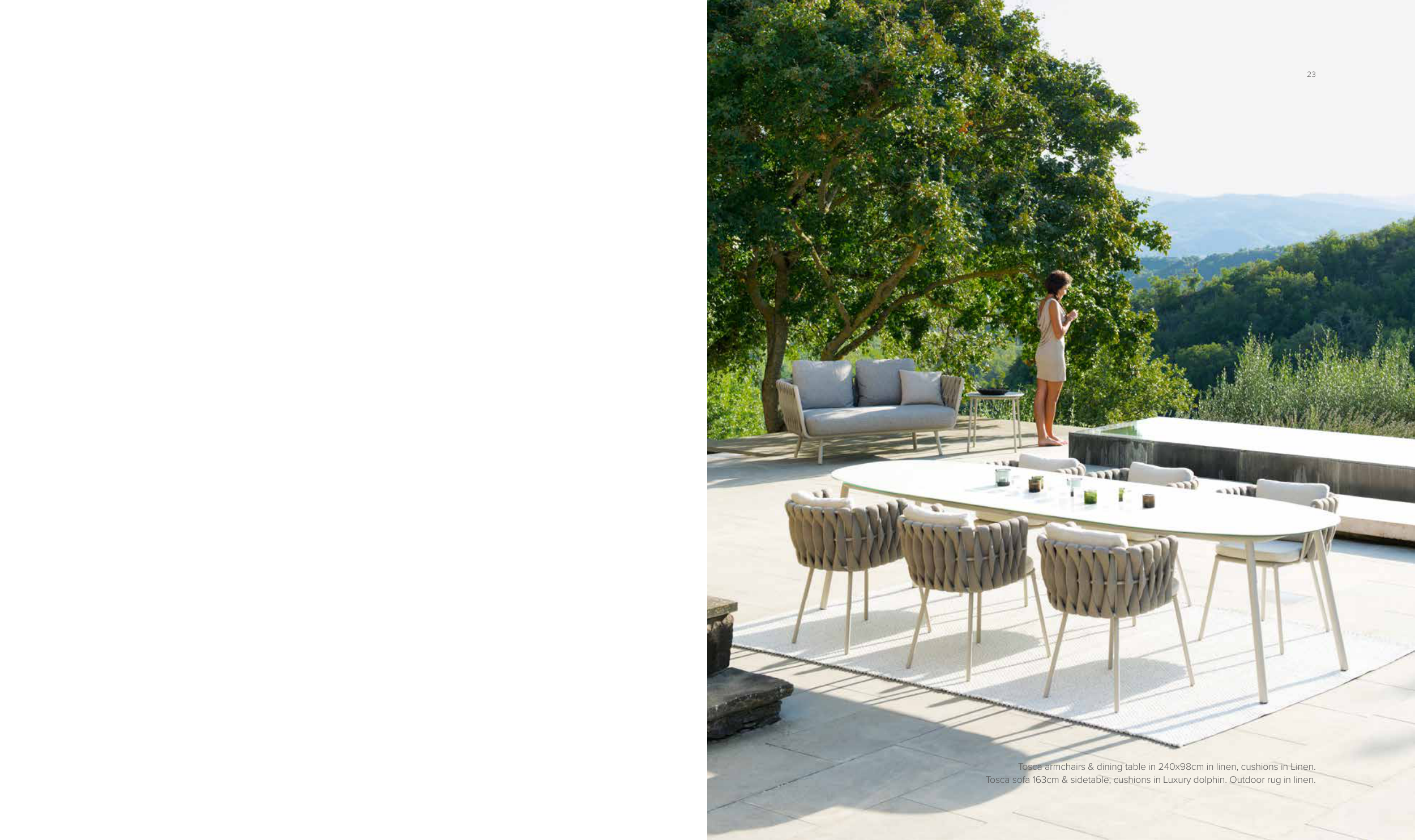 Tosca sofa 163cm & sidetable, cushions in Luxury dolphin. Outdoor rug in linen.