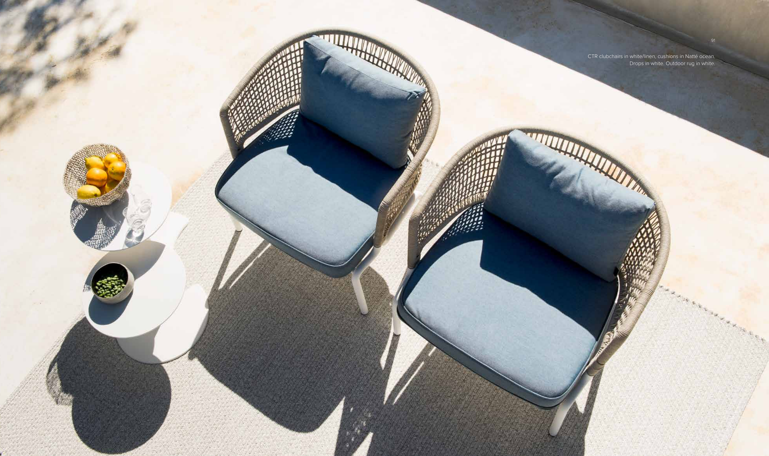 CTR clubchairs in white/linen, cushions in Natté ocean.