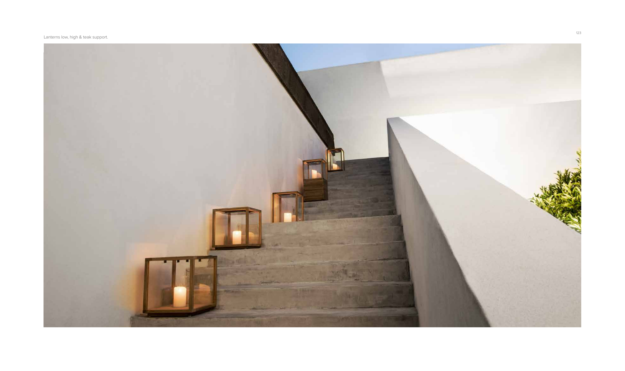 Lanterns low, high & teak support.