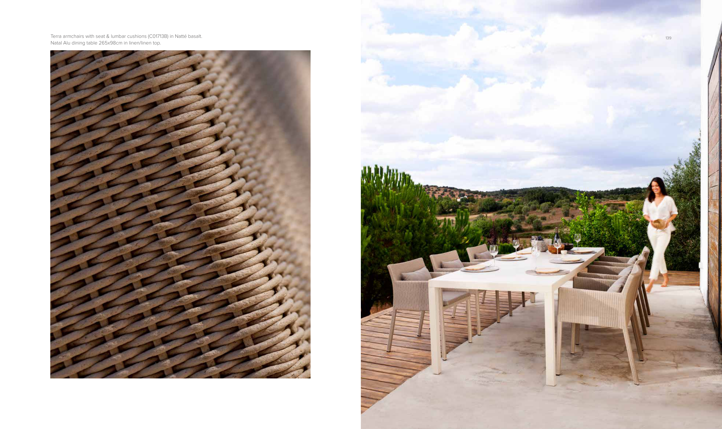 Natal Alu dining table 265x98cm in linen/linen top.