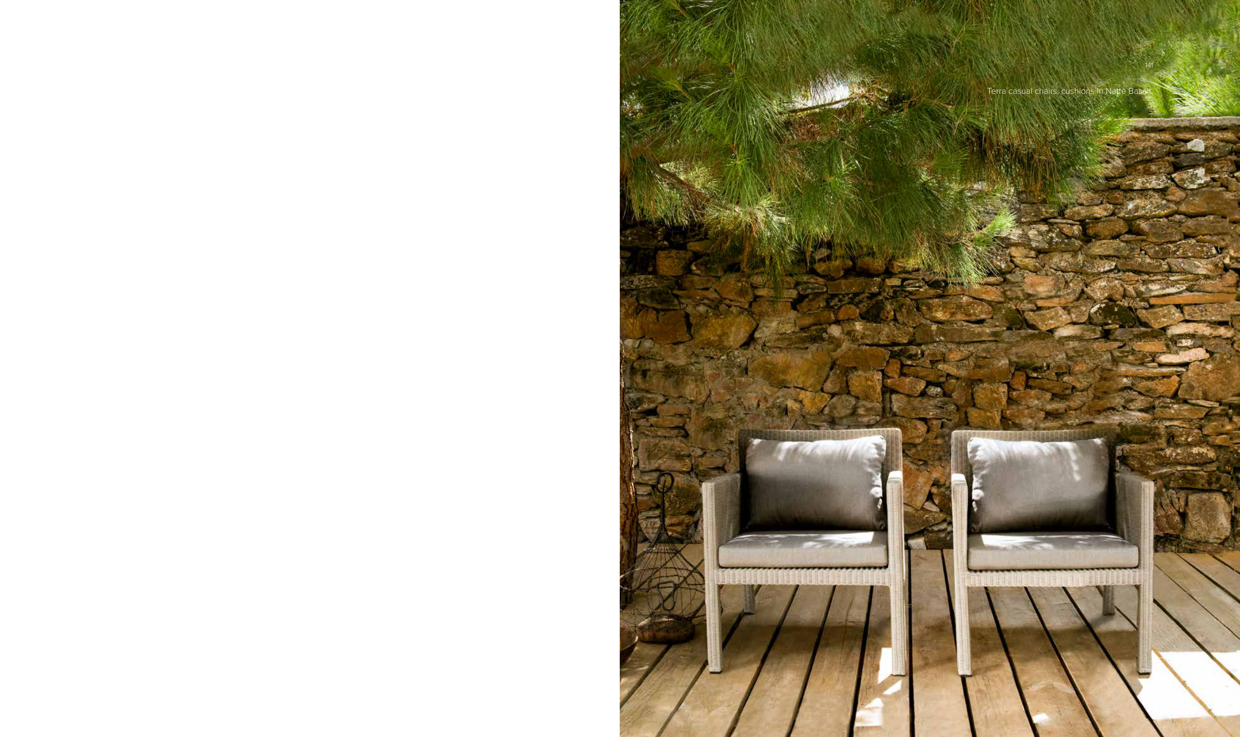 Terra casual chairs, cushions in Natté Basalt.