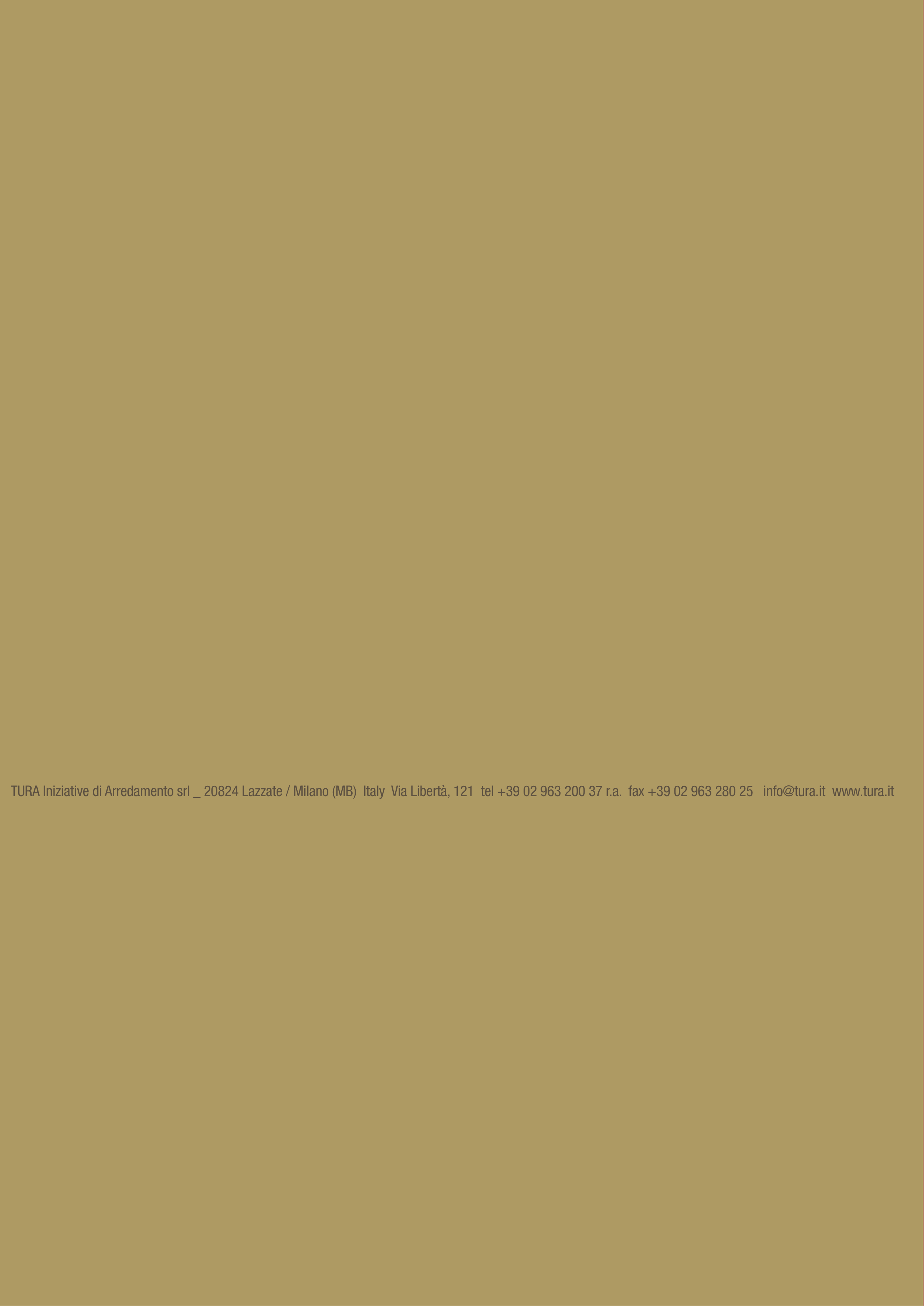 TURA Iniziative di Arredamento srl _ 20824 Lazzate / Milano (MB) Italy Via Libertà, 121 tel +39 02 963 200 37 r.a. fax +39 02 963 280 25 info@tura.it www.tura.it